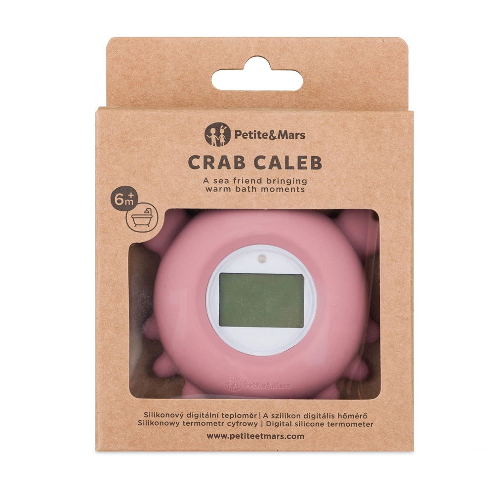 Digitalni termometer za vodo PETITE&MARS Crab Caleb v nežnem odtenku Dusty Rose vsako kopanje spremeni v varen in igriv ritual. Zahvaljujoč natančnemu merjenju v °C in °F ter jasnemu prikazu na LCD zaslonu boste zlahka nastavili idealno temperaturo za dojenčka. Mehko silikonsko ohišje je prijazno do otrokove kože, termometer pa naravno plava na površini, zato je vedno pri roki.