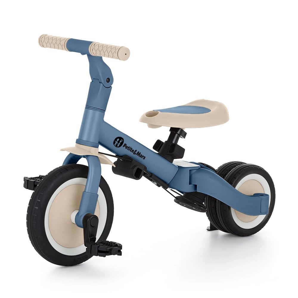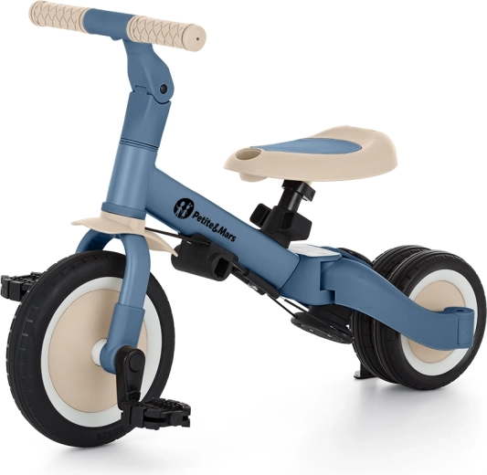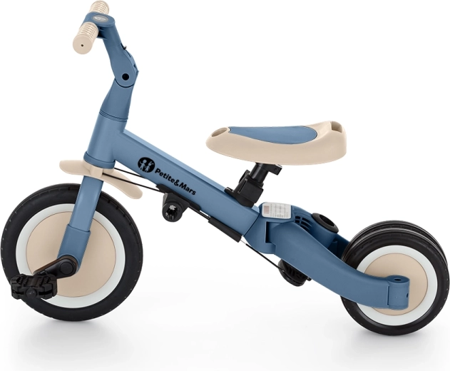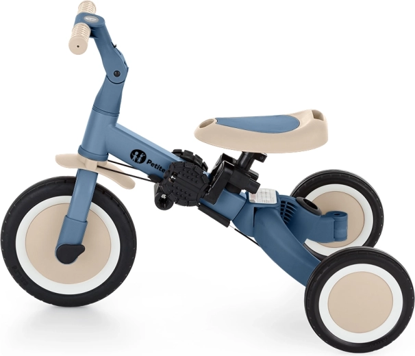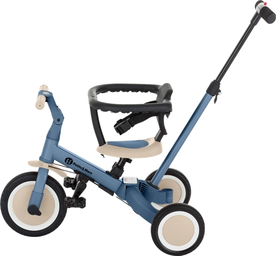Multifunkcijski tricikel PETITE&MARS Turbo Ocean Blue raste z vašim otrokom od prvih korakov pri vožnji do samostojne vožnje na kolesu s pedali. Zaradi premišljenega sistema preureditve ponuja kar 5 načinov glede na starost in spretnosti. Od potiskalnega tricikla preko poganjalnega kolesa do klasičnega kolesa – vedno s stabilnostjo in udobjem, ki ju mali vozniki potrebujejo.