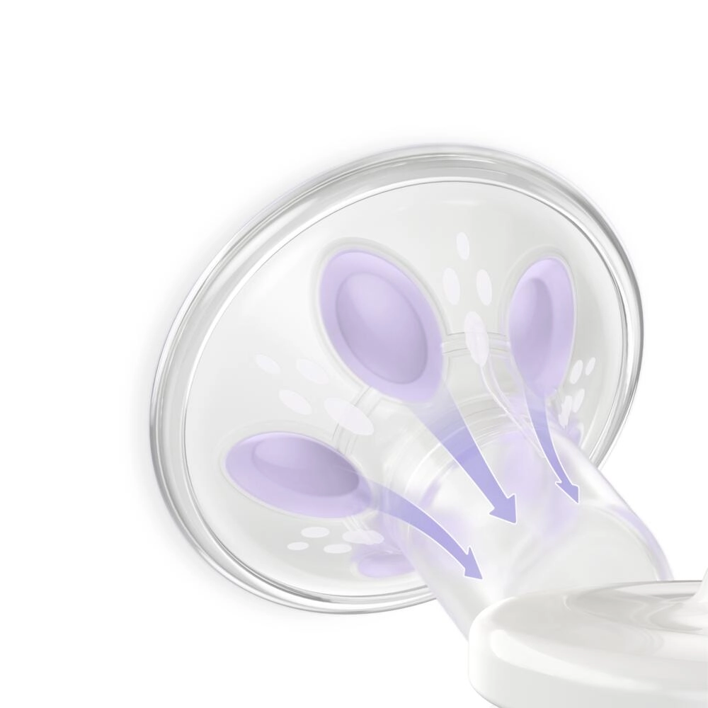 Univerzalni silikonski vložek se nežno upogiba in ustreza večini mamic. Zagotavlja udobje, nežen stik s kožo in podpira naravni pretok mleka.