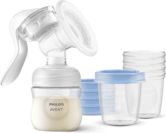 Praktična ročna prsna črpalka PHILIPS AVENT z mehkim silikonskim vložkom in tehnologijo, navdihnjeno z dojenčkovim sesanjem, zagotavlja nežno, tiho in učinkovito črpanje kadarkoli in kjerkoli – brez elektrike in baterij. Mleko lahko črpate neposredno v posodice ali VIA lončke za enostavno hranjenje in varno shranjevanje v hladilniku ali zamrzovalniku. Ergonomski ročaj, hitro čiščenje in preprosto upravljanje naredijo to črpalko priljubljeno izbiro tako med mamicami kot strokovnjaki.