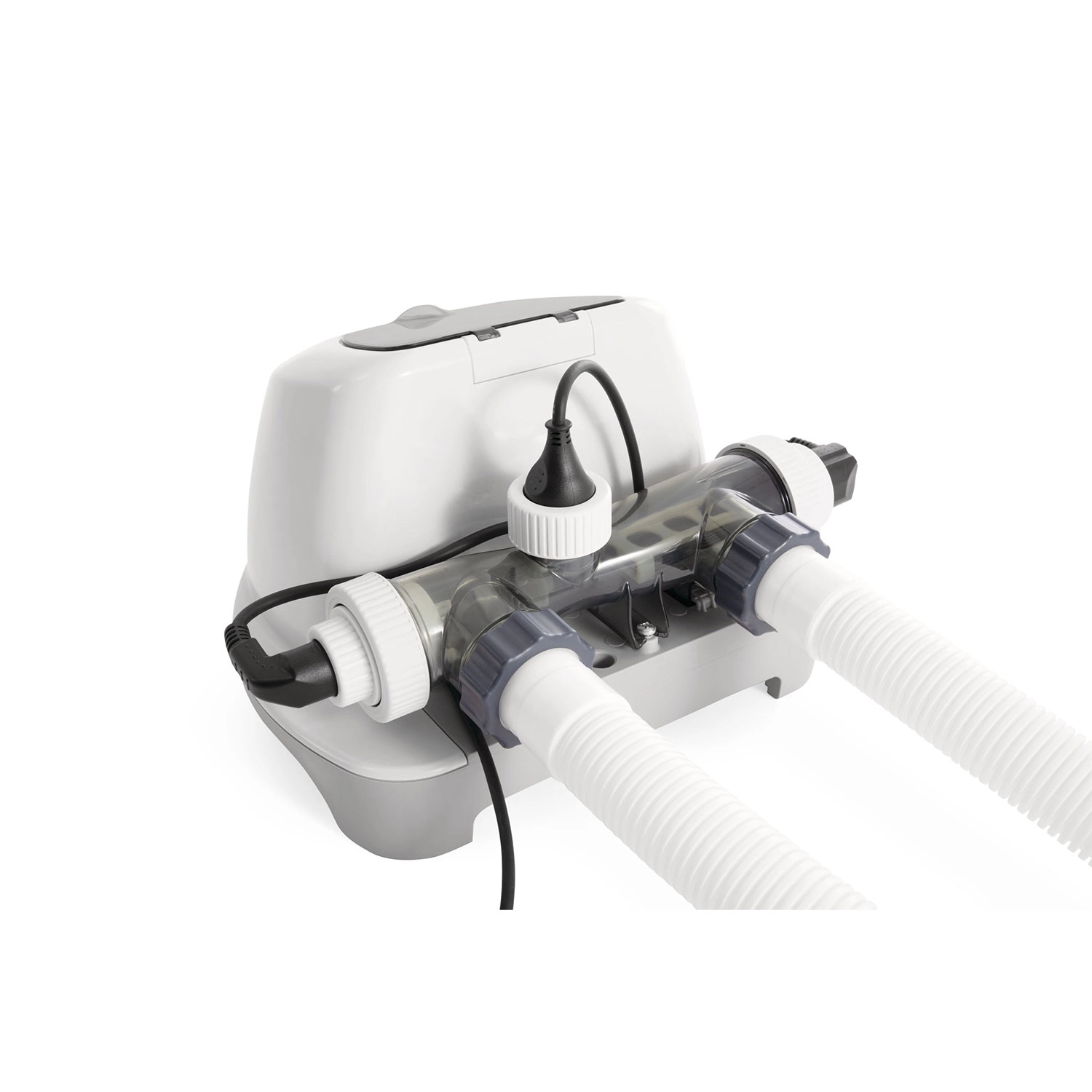 Del paketa so potrebni priključki za enostavno povezavo na filtrirno črpalko s pretokom 2.650–12.112 l/h.