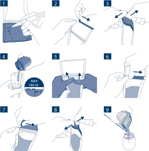 Praktične vrečke Philips AVENT za varno shranjevanje materinega mleka prostornine 180 ml v pakiranju po 25 kosov. So predhodno sterilizirane, imajo dvojno zadrgo proti razlitju, ojačane šive in dvojno plast materiala za zanesljivo shranjevanje v hladilniku in zamrzovalniku. Zaradi široke odprtine se zlahka polnijo in prelivajo, zahvaljujoč čvrsti zasnovi pa stojijo samostojno. Material je brez BPA, vrečke pa je za prihranek prostora mogoče shranjevati ploščato.