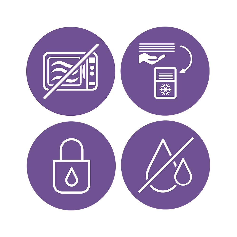 Vrečke za materino mleko Philips Avent so zasnovane za higiensko, varno in priročno shranjevanje vašega dragocenega mleka. Predhodna sterilizacija in zaščitno tesnilo zagotavljata, da je vrečka pred prvo uporabo neodprta. Dvojna zadrga, ojačani bočni šivi in dvojna plast materiala ščitijo pred razlitjem tudi v zamrzovalniku, medtem ko široka in robustna odprtina olajša polnjenje in prelivanje.