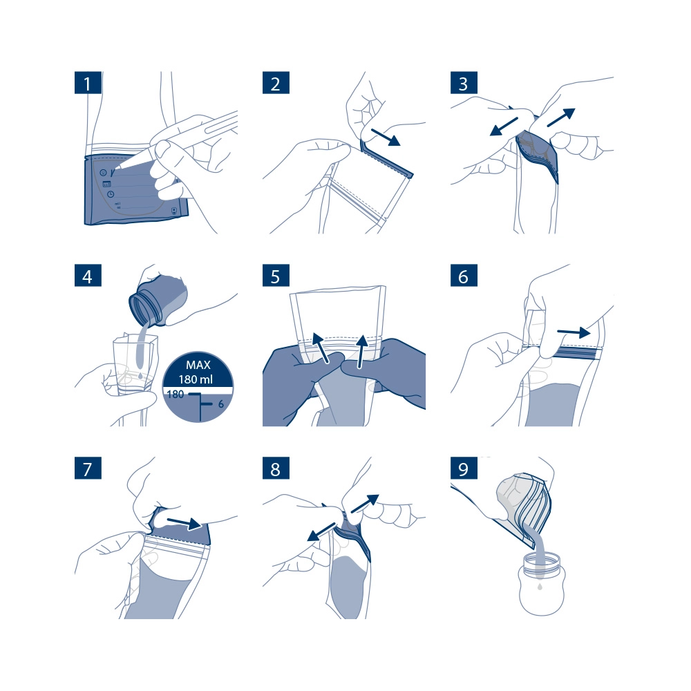 Za največjo praktičnost vrečke stojijo samostojno, pri shranjevanju pa jih lahko položite ploščato, s čimer prihranite prostor v hladilniku in zamrzovalniku. Material brez BPA izpolnjuje stroge higienske zahteve. Idealna izbira za mamice, ki želijo varno črpati, polniti, shranjevati in streči materino mleko.