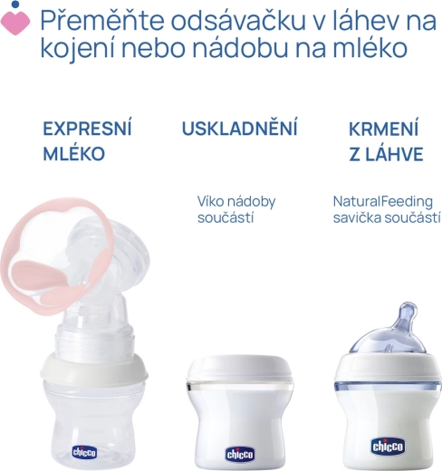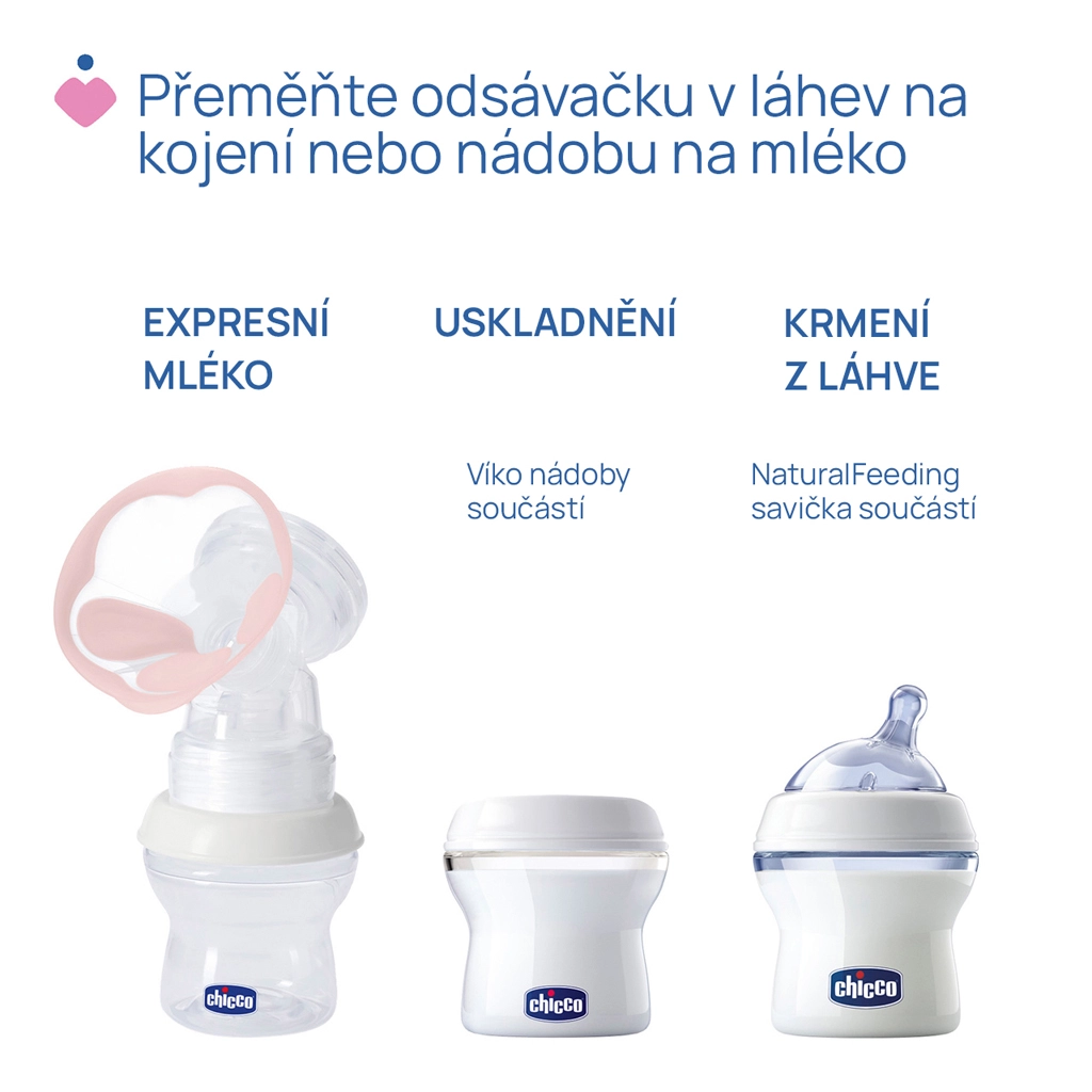 - Praktičnost – možnost črpanja neposredno v posodo ter uporabe z zaporko ali kot stekleničke z dudico.