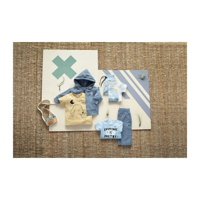 Premišljen kroj brez tiščanja pri vratu zagotavlja celodnevno udobje, medtem ko nežen potisk doda igriv videz. Idealno za vsakodnevno nošenje, v voziček ali za doma.