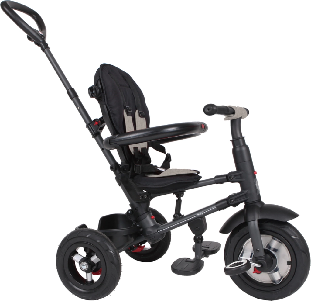 Privoščite svojemu otroku udobno in varno vožnjo s triciklom QPlay Rito Air Gel Grey. Ponuja zložljiv okvir, odstranljivo strešico z UPF 50+, gumijasta zračna kolesa za gladko vožnjo ter 5-točkovne varnostne pasove. Zahvaljujoč nastavljivemu naslonjalu, sprednjemu prostotekočemu kolesu in starševskemu vodenju je idealen za vsakodnevne sprehode od 10 do 72 mesecev.