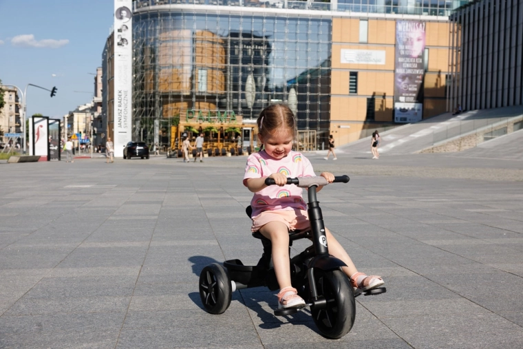 Tricikel Qplay Rito Star je zasnovan za udobje otroka in staršev. Lahek in trden aluminijast okvir, zračno oblazinjenje in nastavljivo naslonjalo z 2 položajema zagotavljajo udobno vožnjo. Starši bodo cenili gladko upravljanje, zavore na zadnjih kolesih ter možnost hitrega zlaganja v kompaktno obliko za enostavno prenašanje in shranjevanje.