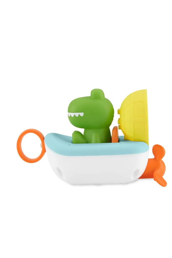 Ta pisana kopalna igrača prinaša otrokom, starim 12m+, veliko dejavnosti v enem: natezni čolniček se po potegu vrvice požene, odstranljiv propeler spremenite v praktično cedilo, simpatični krokodil pa poskrbi za vodno brizgalno zabavo. Varne zaobljene oblike in enostaven oprijem spodbujajo samostojno igro ter učenje vzroka in posledice.
