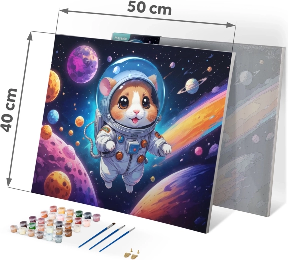 Ta komplet za slikanje po številkah vsebuje vse, kar potrebujete za ustvarjanje privlačne slike z motivom simpatičnega astronavta med planeti. Visokokakovostno platno na napetem okvirju je grundirano in s predtiskanimi, nežno označenimi polji za lažje vodenje čopiča. Barvna podslika olajša orientacijo in pomaga doseči intenziven rezultat tudi popolnim začetnikom.