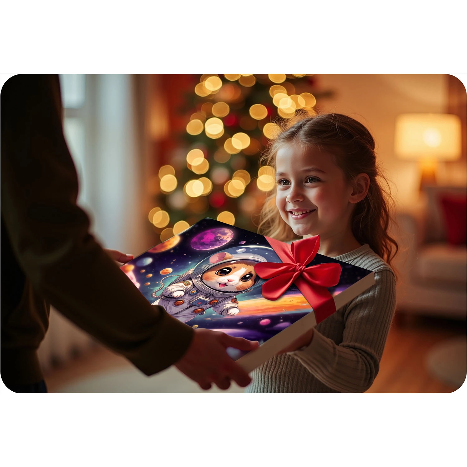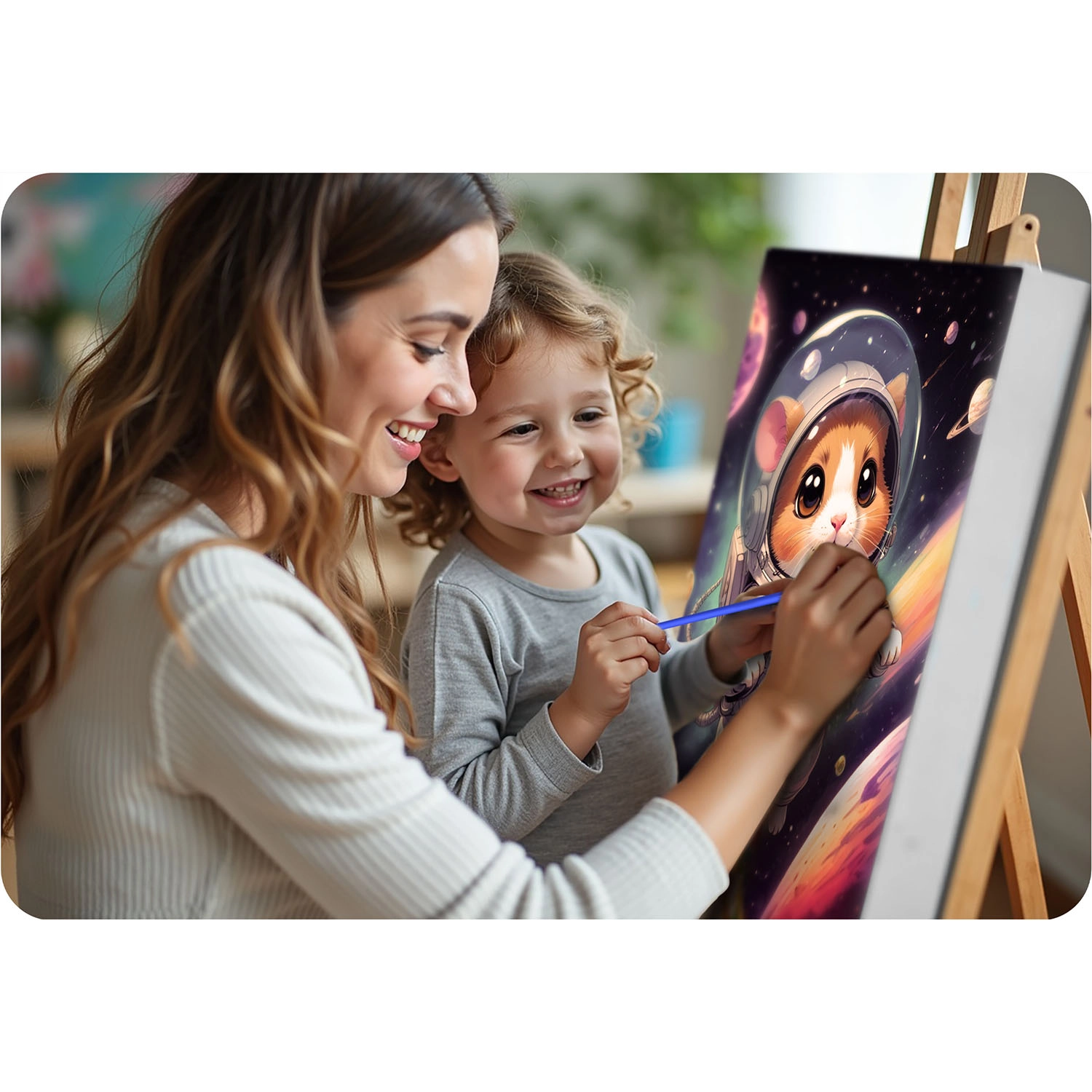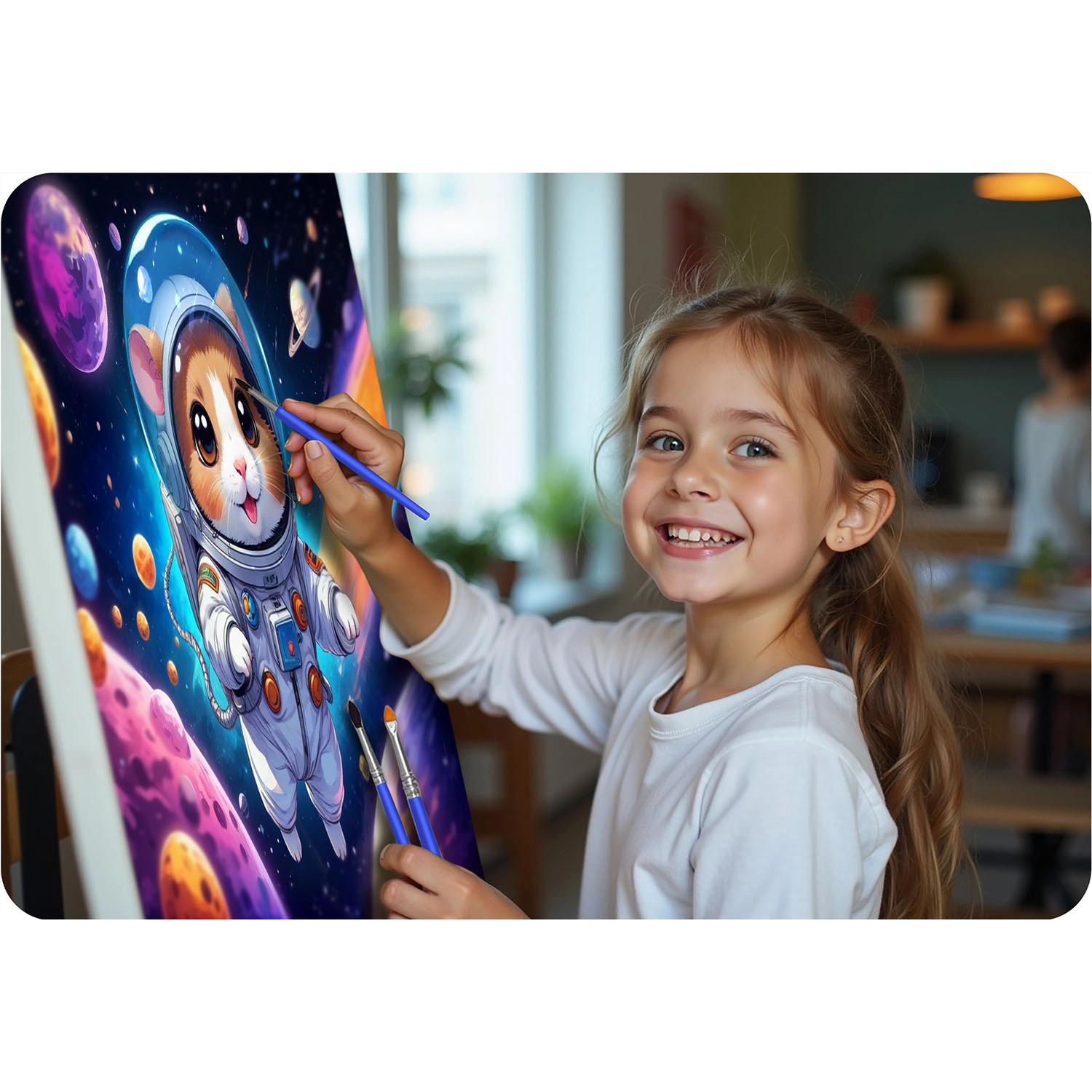 Odkrijte veselje do ustvarjanja s kreativnim kompletom za slikanje po številkah na platnu velikosti 40 × 50 cm. Motiv Astronavt bo očaral otroke in odrasle, platno na okvirju je vnaprej pripravljeno za slikanje, v paketu najdete do 30 prekrivnih barv, 3 čopiče različnih debelin in kljukice za obešanje. Odlično za začetnike in izkušene – dovolj je, da sledujete številkam in ustvarili boste živahno, barvito sliko z vesoljskim motivom.