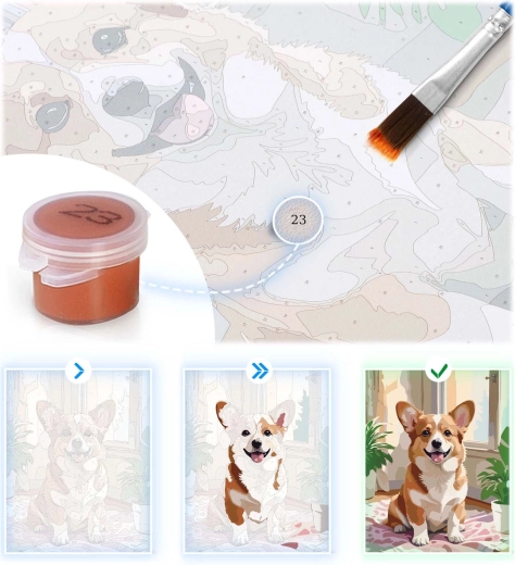 Prednatisnjeni in oštevilčeni segmenti z barvno podslikavo vodijo roko korak za korakom. Idealno za začetnike in otroke – rezultat je vedno impresiven.