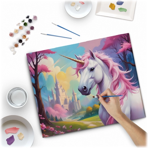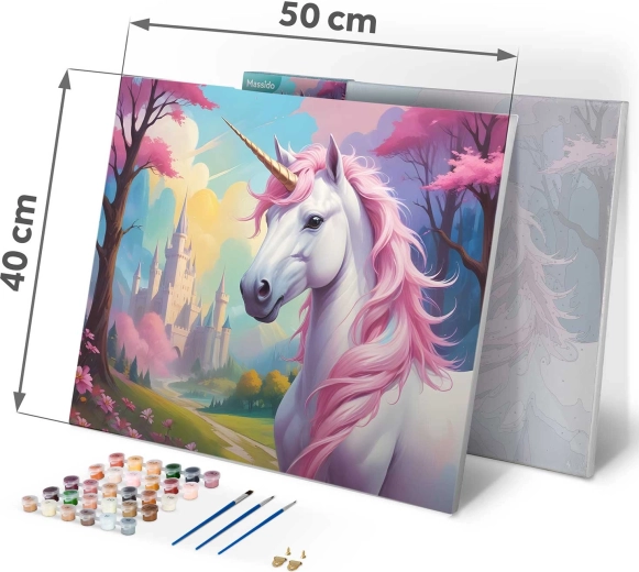 Odkrijte čar ustvarjanja s kompletom slikanje po številkah v velikosti 40 × 50 cm. Motiv samoroga na kakovostnem platnu na okvirju je pripravljen za slikanje. V kompletu najdete 30 prekrivnih akrilnih barv, 3 brezplačne čopiče različnih velikosti in kljukice za obešanje. Barvna podslikava z nežnim vzorcem olajša slikanje tudi začetnikom in zagotovi čudovit, nasičen rezultat.
