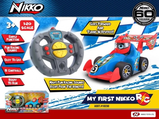 Predstavite najmlajšim dirkačem njihov prvi daljinsko voden avtomobilček My First Nikko. Preprost upravljalnik omogoča takojšen start na stezo, obračanje nazaj in predvajanje zabavnih dirkaških in piskajočih zvokov. Mehki robovi in kakovostna izdelava zagotavljajo varno igro, baterije so priložene, igrača pa je primerna že od 2 let.
