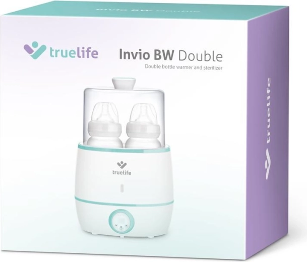 Praktičen in hiter pomočnik za starše – grelnik stekleničk TrueLife Invio BW Double zmore sočasno ogreti dve steklenički, ohraniti stalno temperaturo 37 °C zahvaljujoč funkciji Keep Warm in poleg tega ponuja sterilizacijo brez potrebe po dodatni napravi. Enakomerno segrevanje, hiter zagon, tiho delovanje in pregleden LCD-zaslon poskrbijo za udobno hranjenje, kadar koli potrebujete.