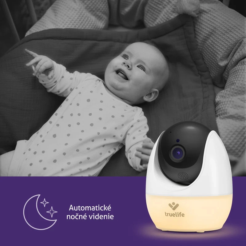 Imejte pregled nad dojenčkom podnevi in ponoči. Kamero varuške TRUELIFE NannyCam R4 Pro upravljate na enoti za starše; vrti se vodoravno za 355° in navpično za 105°, zato vam nič ne uide. IPS zaslon z diagonalo 4,3" prikazuje verne barve in široke vidne kote, infrardeče LED pa zagotavljajo ostro sliko tudi v popolni temi.