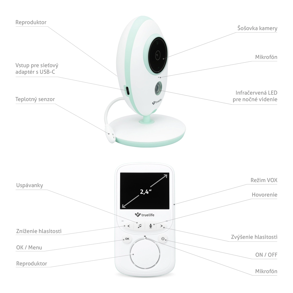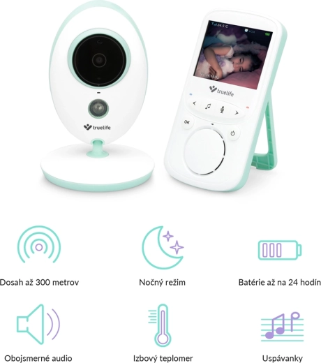 Digitalna video varuška TRUELIFE NannyCam V24 Pro ponuja jasno sliko podnevi in ponoči, pregleden 2,4" barvni LCD, stabilen prenos 2,4 GHz do 300 m ter dvosmerno komunikacijo. Zahvaljujoč načinu VOX baterija starševske enote zdrži do 24 ur. Na voljo so nočni vid, merjenje sobne temperature, uspavanke in sodobno polnjenje USB‑C z možnostjo uporabe powerbanke.