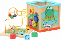 Ta lesena motorična kocka Garden znamke small foot otrokom prinaša pisan svet dejavnosti na vsaki strani. Vrtljiv pokrov s krogličnim labirintom, vstavljanka z oblikami in zobniki ohranjajo pozornost malih raziskovalcev, spodbujajo potrpežljivost in naravno razvijajo kognitivne spretnosti.