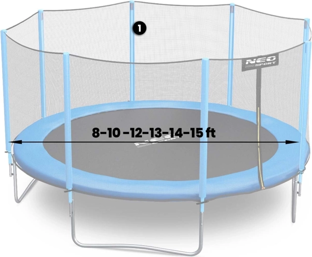 Odporna zasnova in natančne mere omogočajo preprosto montažo in dolgo življenjsko dobo. Modra barva se estetsko ujema z večino setov Neo-Sport in običajnimi vrtnih trampolinov.