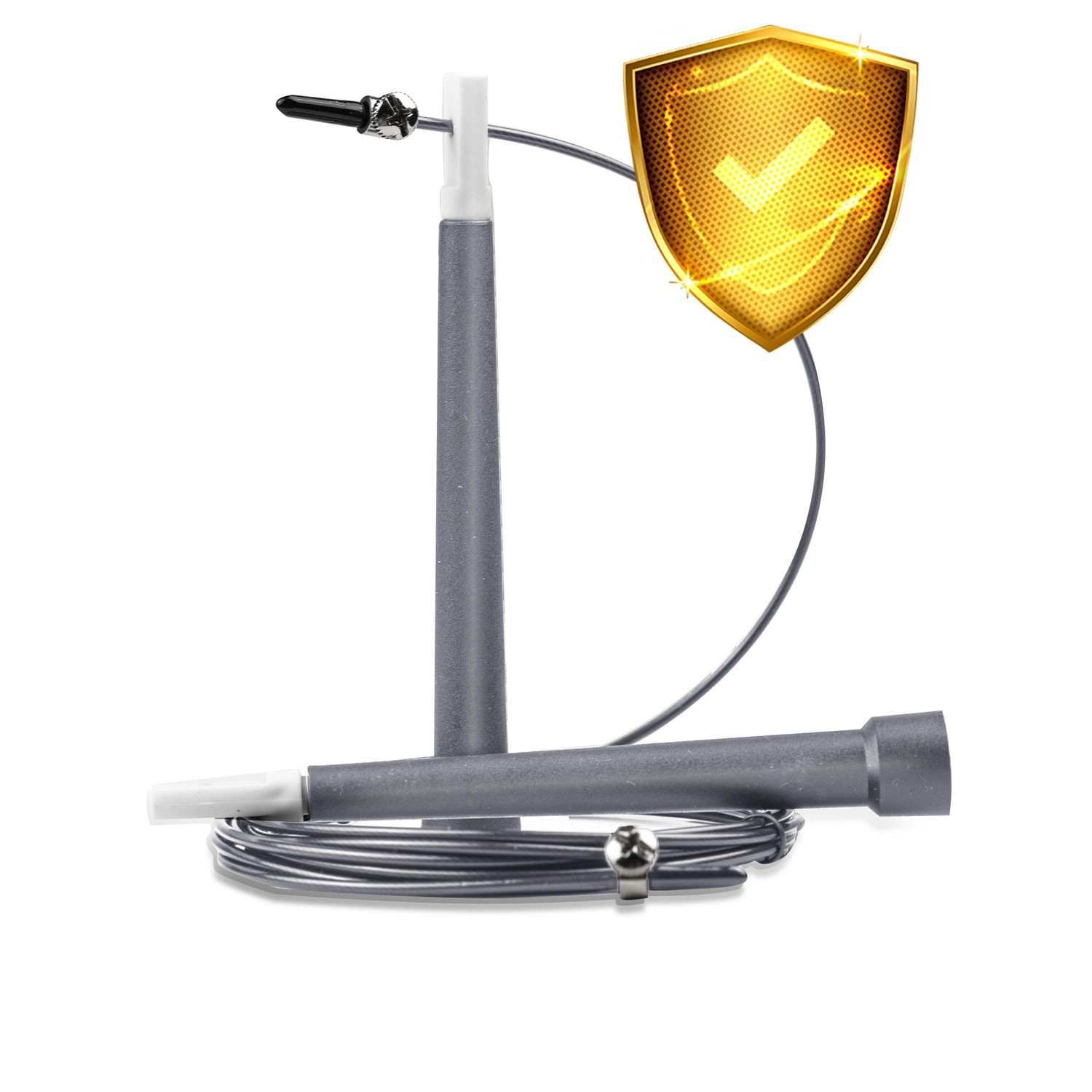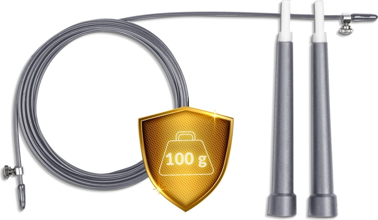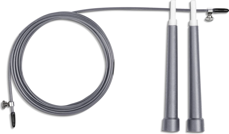 Tanka, pletena jeklena vrvica v zaščitni bužirki zagotavlja minimalno trenje in izjemno hitro rotacijo – idealno za kardio, double-unders in speed treninge.