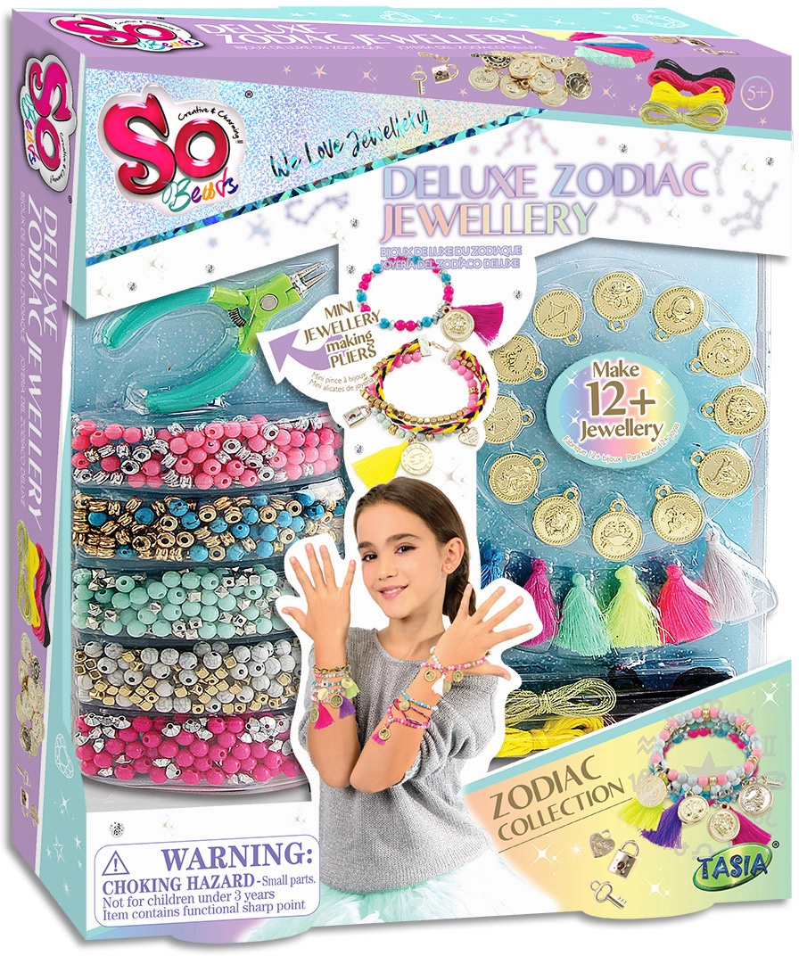 Odkrijte veselje do ustvarjanja z univerzalnim kompletom za male oblikovalke – deluxe komplet za izdelavo zapestnic zodiaka s praktičnimi kleščami in bogato izbiro perlic, obročkov in obeskov. Otroci si zlahka izdelajo izviren nakit po svojem znamenju in domišljiji, razvijajo ustvarjalnost ter fino motoriko in uživajo ure zabave doma ali na zabavah.