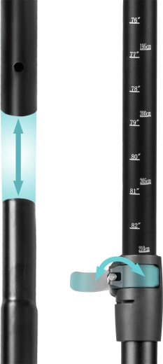 Merilne oznake in hitra objemka omogočata natančno nastavitev dolžine do 230 cm za udoben doseg in učinkovit zavesljaj.