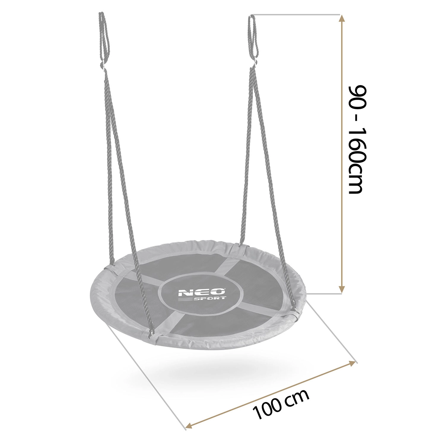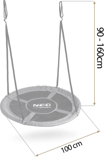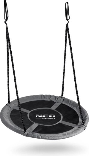 Krožna gugalnica NEO-SPORT Swingo 100 cm je odlična izbira za vrt, teraso ali otroško igrišče. Robustni jekleni okvir, obdan z mehko peno, ščiti med guganjem, medtem ko je trpežno sedišče iz materiala Oxford 600D vodoodporno in enostavno za čiščenje. Zaradi visoke nosilnosti je primerna za mlajše in starejše otroke – omogoča tudi skupno guganje.