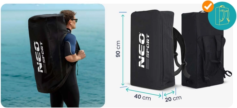 V paketu je vse, kar potrebujete: nastavljivo veslo, odstranljiv smernik, leash, dvofazna tlačilka z manometrom, komplet za popravilo in trpežen nahrbtnik. Dovolj je napihniti in se odpraviti.