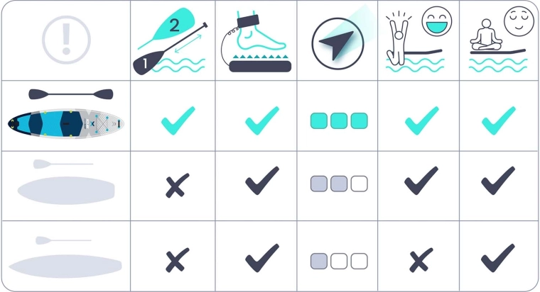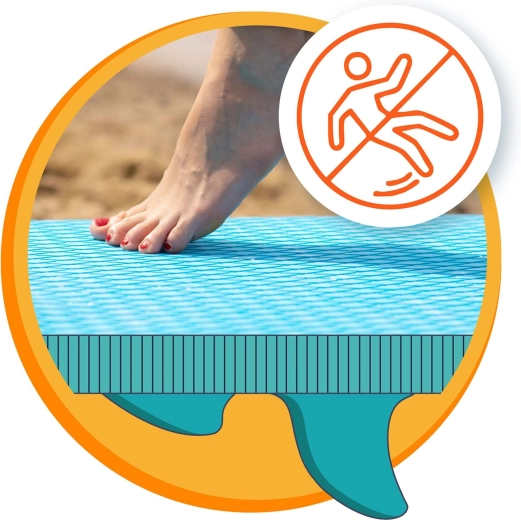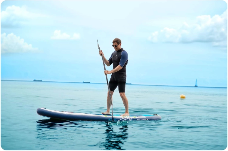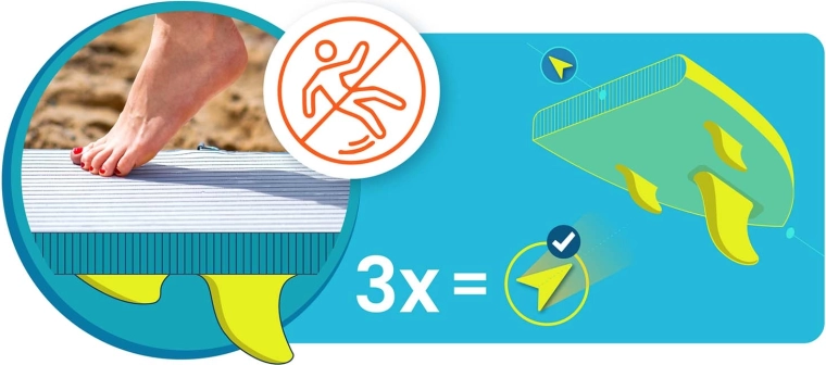 Teksturirana EVA pena nudi odličen oprijem tudi z mokrimi stopali – za varno stojo, stabilen zavesljaj in udobno manevriranje na vodi.