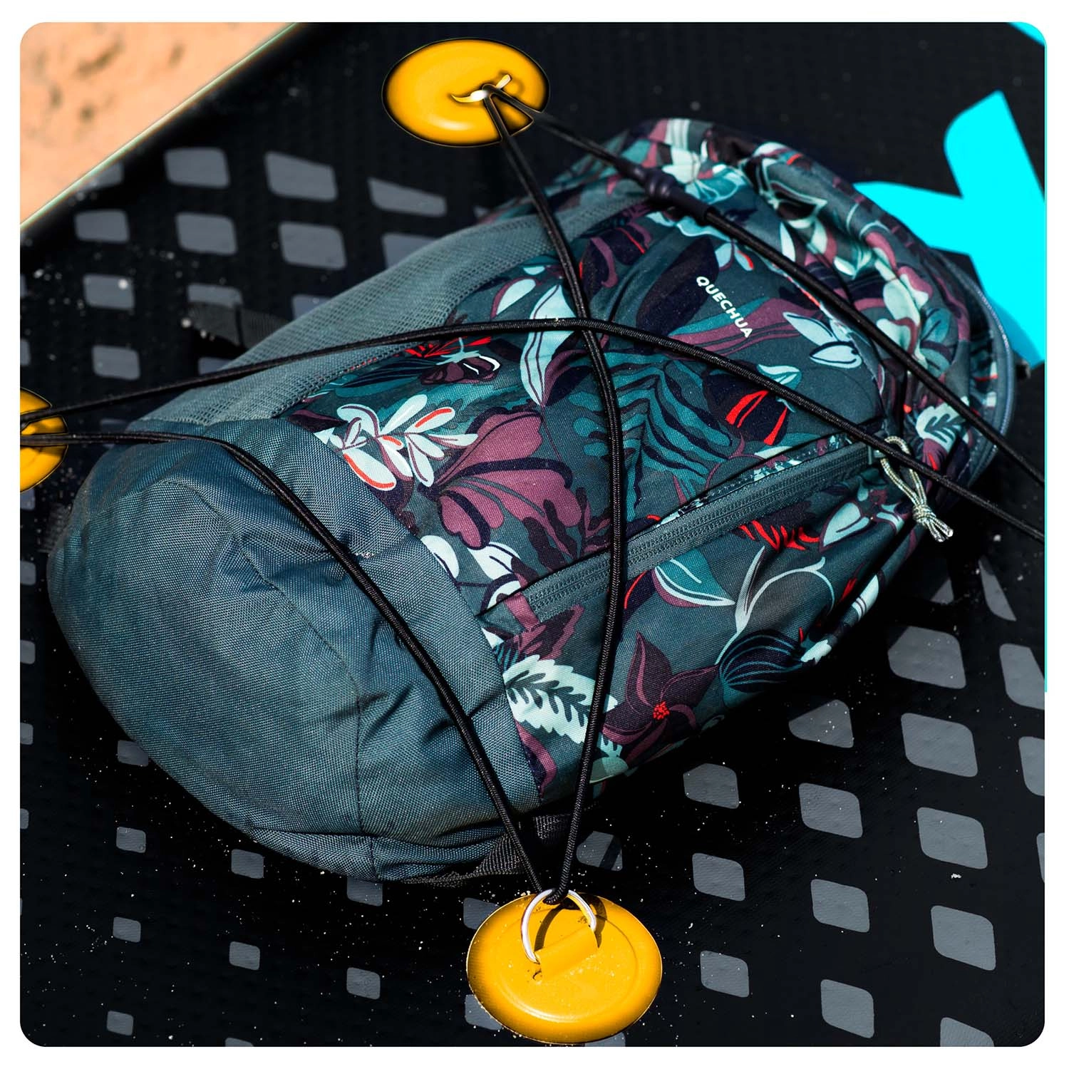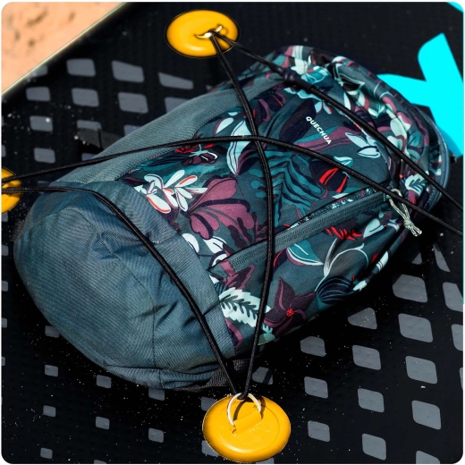Sprednje elastične vrvice in več D-obročkov varno držijo nahrbtnik, jakno in steklenico na dosegu roke. Potujte lahkotno in varno – vse ostane na svojem mestu.