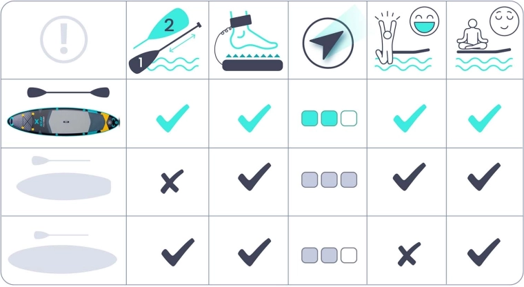 Široka paluba, nedrseča EVA podlaga in elastične bungee vrvice poskrbijo za varnost vas in vaše opreme. Idealno za začetnike, družine in sproščanje na vodi.