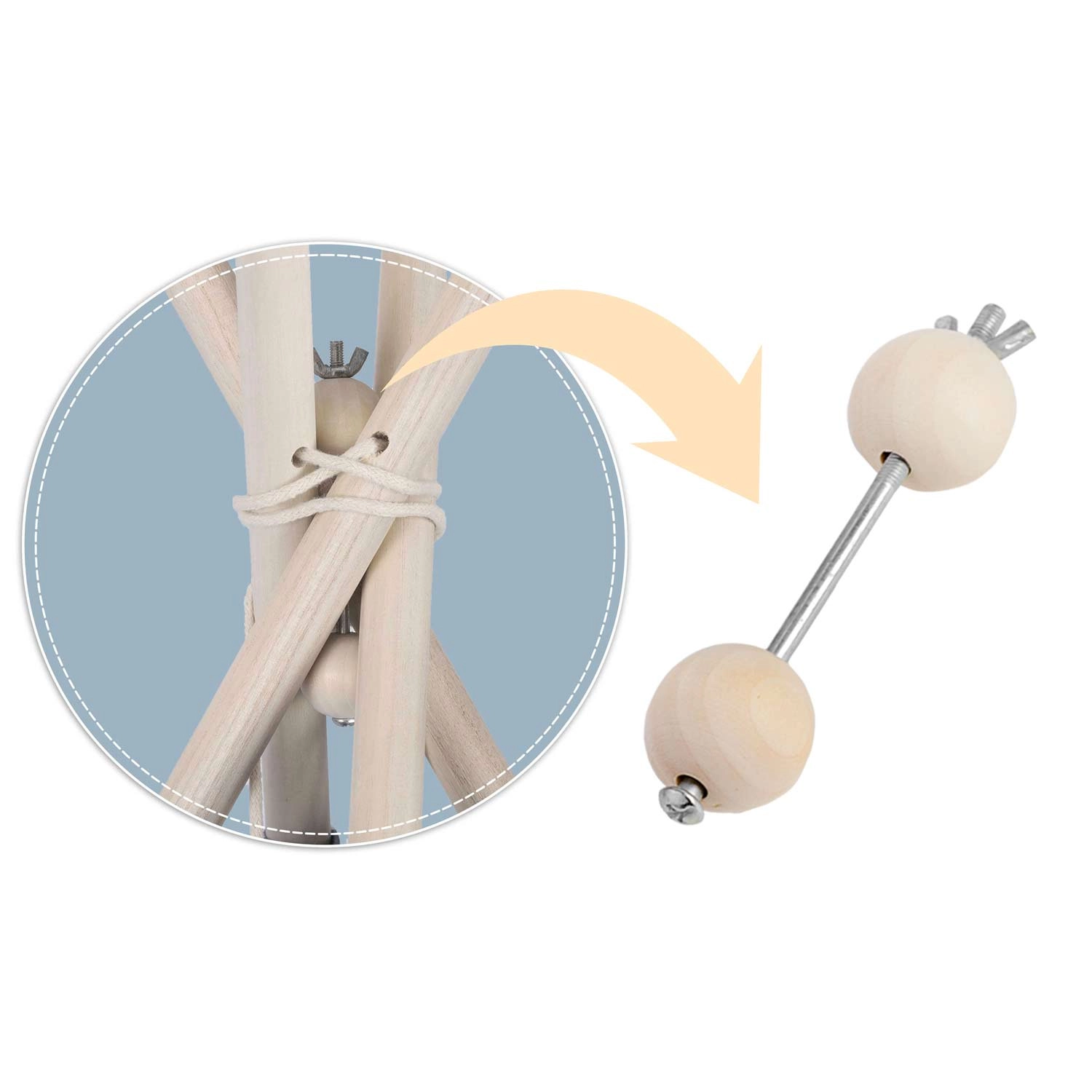 Štiri borove palice in priložen stabilizator držijo obliko tipija, povečujejo varnost ter zagotavljajo trdnost pri igri.