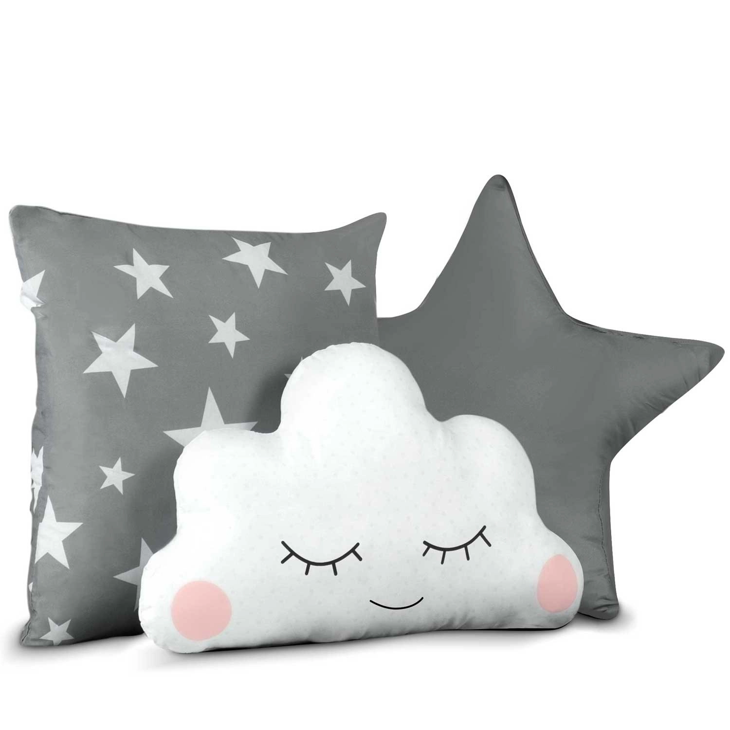 V paketu prejmete podloženo podlogo, 3 blazinice, LED lučke, girlando in praktično torbo – vse usklajeno v sivi barvi z zvezdicami.