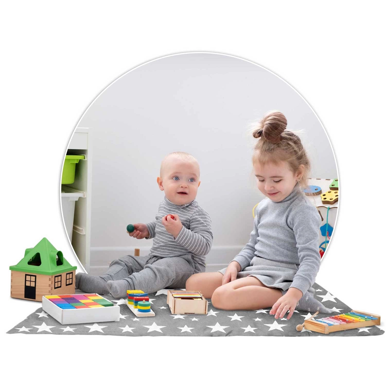 - Montessori, sivo izvedbo z zvezdicami