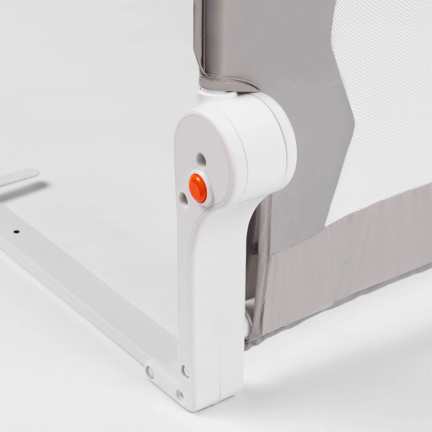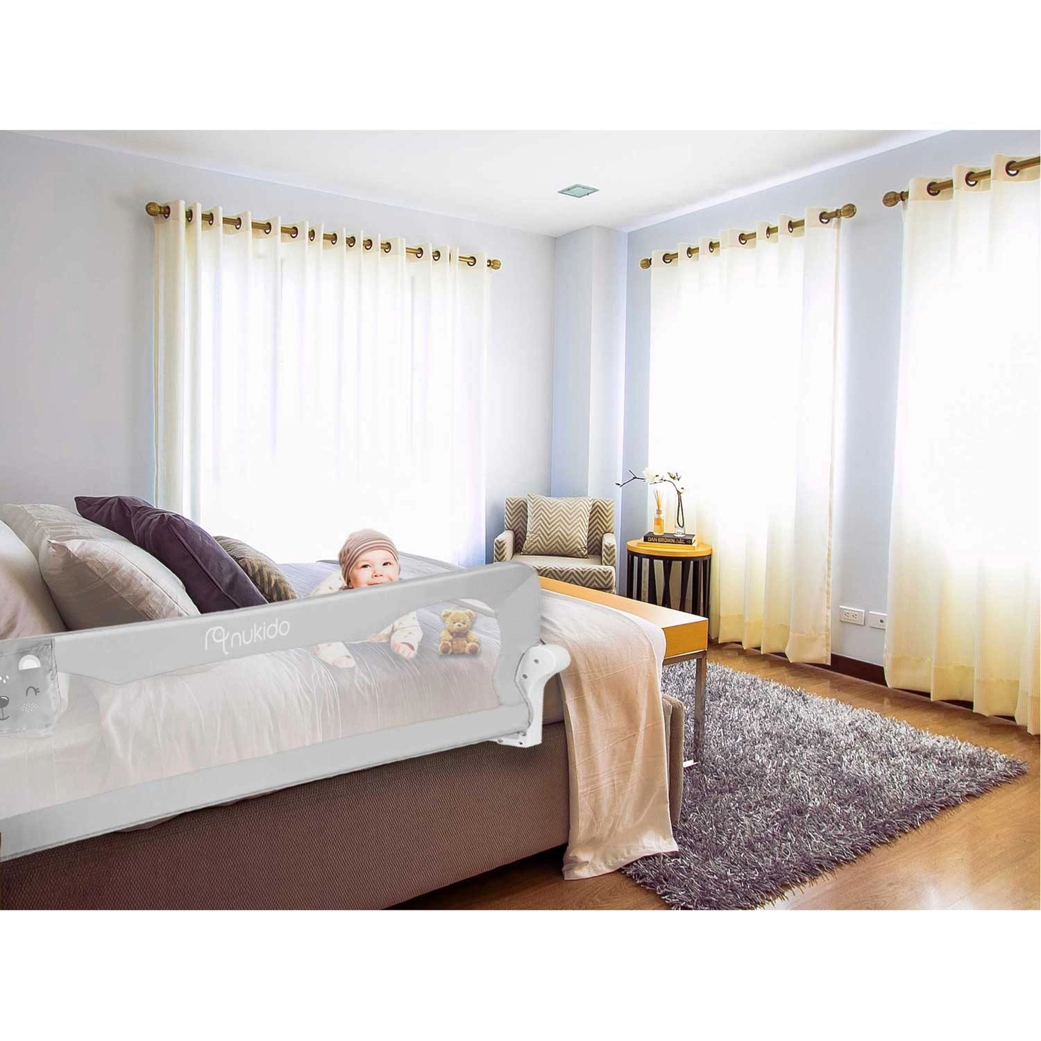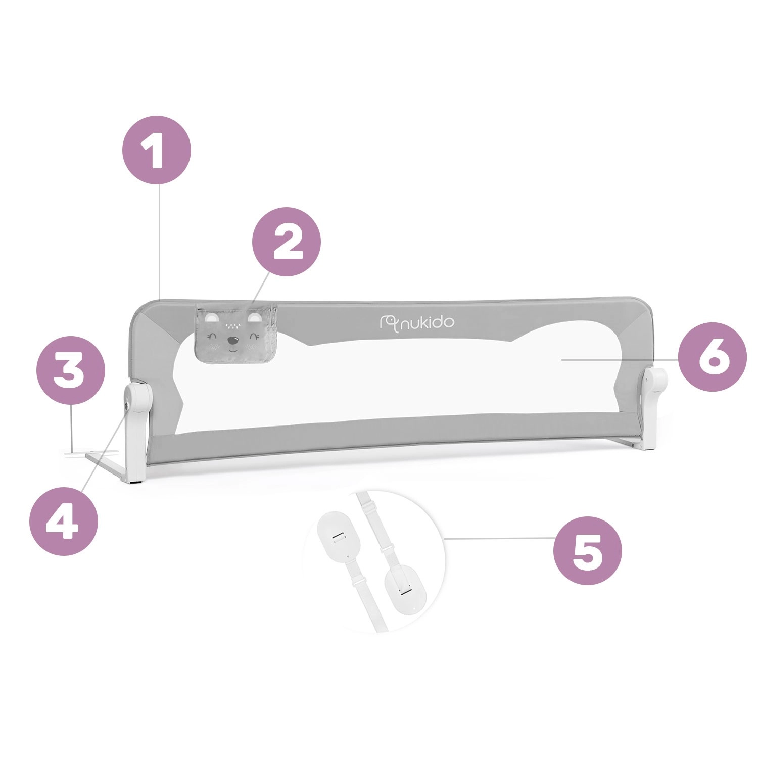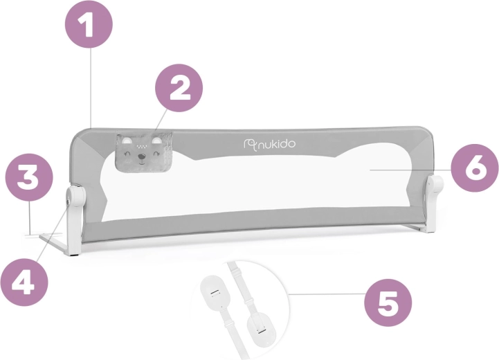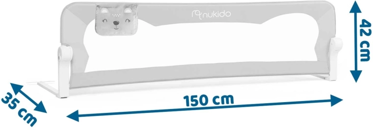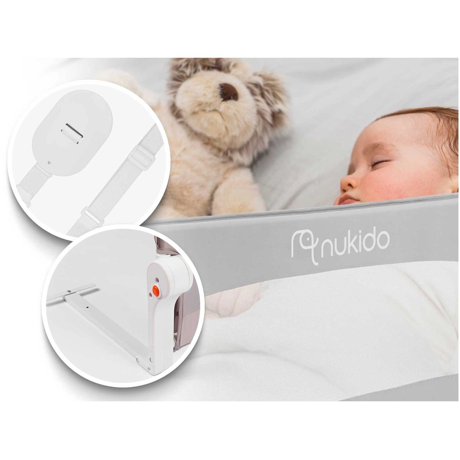 Otroška posteljna ograja Nukido je zasnovana za največjo varnost in udobje pri vsakodnevni uporabi. Trdno, a lahko jekleno ogrodje ohranja obliko, medtem ko fina in trpežna mrežica zagotavlja odlično vidljivost na spečega dojenčka in zadostno prezračevanje. Zahvaljujoč zaklepu proti samodejnemu zlaganju ograja ostane trdno na mestu tudi med živahnejšo igro.