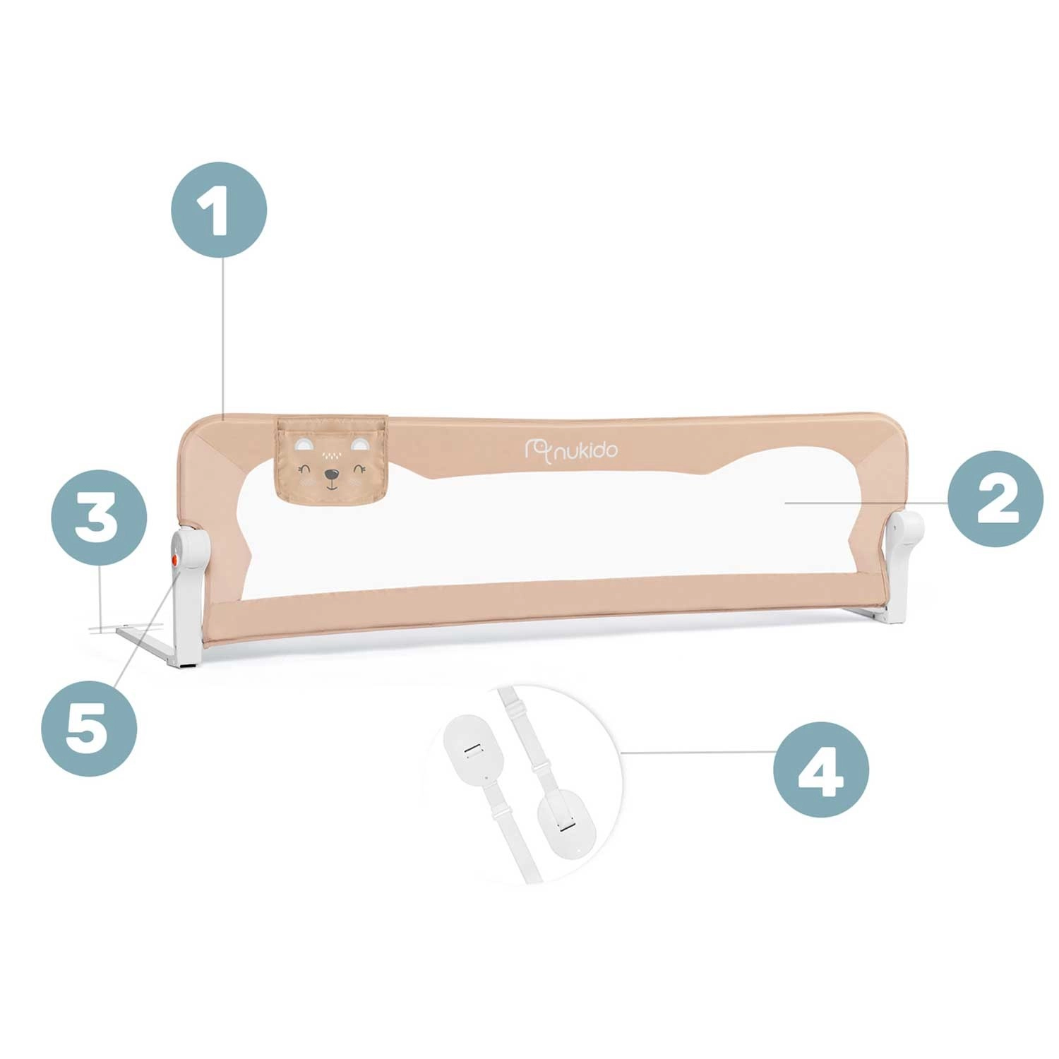 Ograja NUKIDO izpolnjuje strog standard BS 7972:2001 + A1:2009. Varnostno varovalo preprečuje samodejno zlaganje in ustvarja zanesljivo pregrado proti padcu otroka s postelje.
