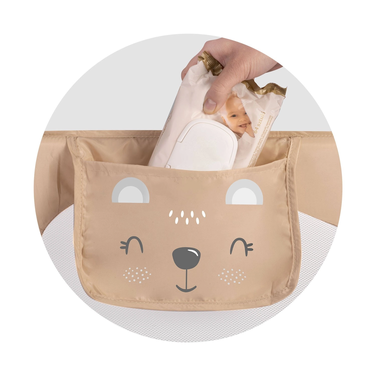 Lahko, a čvrsto jeklo zagotavlja dolgo življenjsko dobo. Mrežasti panel nudi odlično vidljivost na otroka in omogoča pretok zraka za udoben spanec.