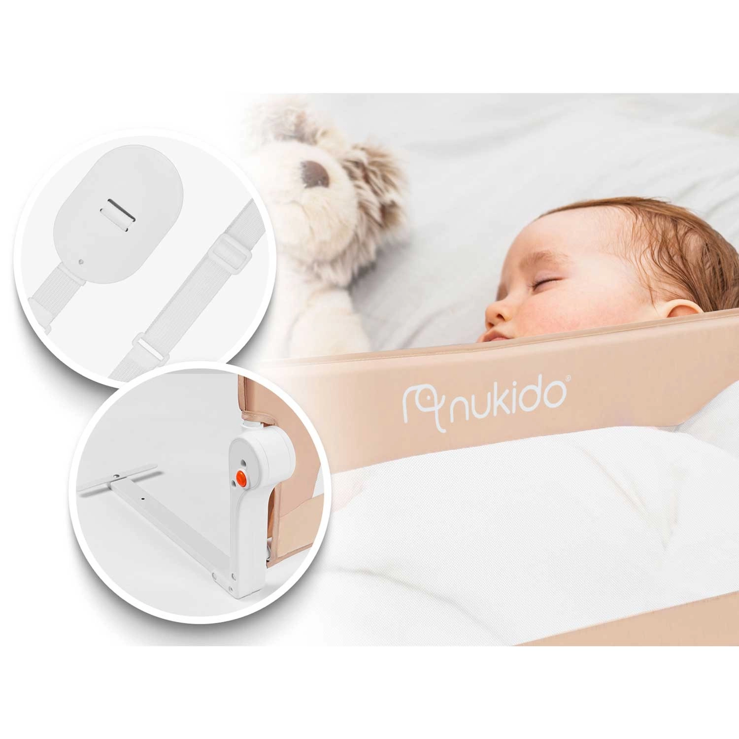 Ograja za posteljo NUKIDO je zasnovana tako, da otrokom zagotovi varen spanec, staršem pa mir. Trden, a lahek jeklen okvir s kakovostno izdelavo zdrži vsakodnevno uporabo, medtem ko zračna mreža omogoča pretok zraka in vizualni nadzor nad otrokom. Zaradi nagibnega mehanizma z razponom do 180° je ograjo mogoče preprosto odpreti brez demontaže.