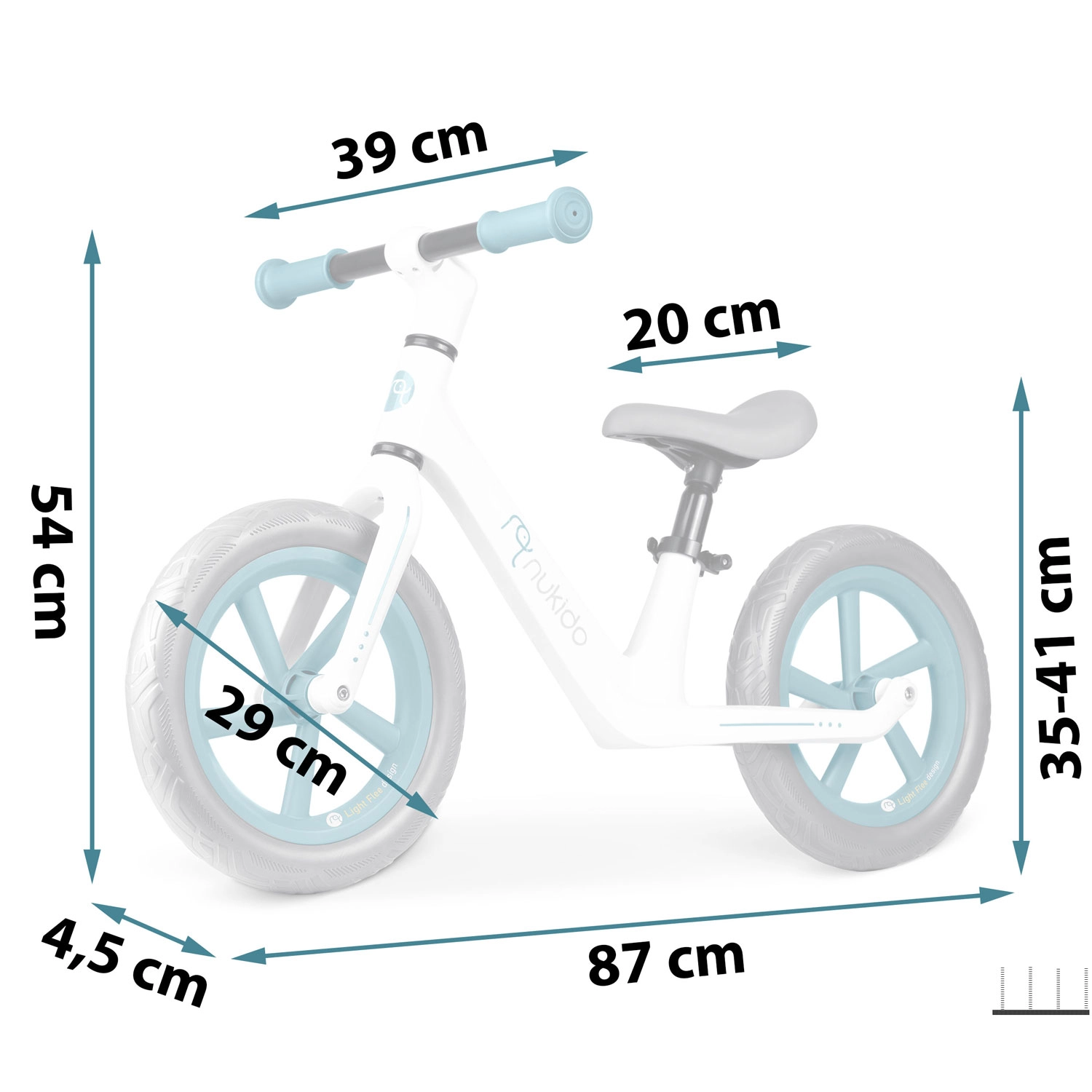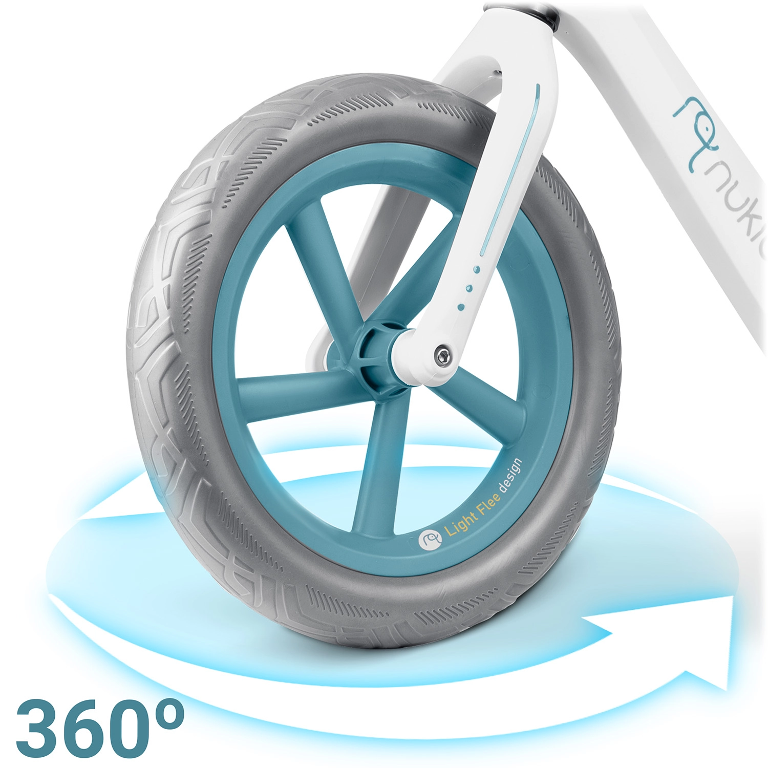 Lahek otroški poganjalec Nukido Light Flee pomaga malim kolesarjem razvijati ravnotežje in koordinacijo pred prehodom na kolo s pedali. Ponuja vzdržljiv najlonski okvir, nastavljivo višino sedeža v razponu 8 cm, neprebojna EVA kolesa 12” in ergonomske gumijaste ročaje z zaključki. S samo 2,8 kg je enostaven za upravljanje tako za otroke kot starše.