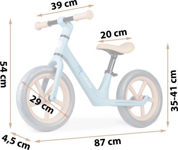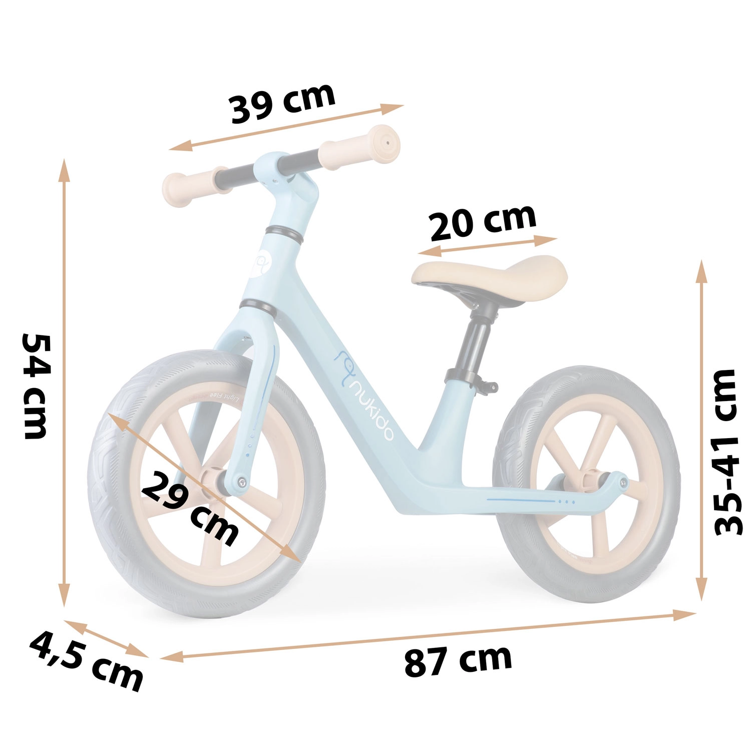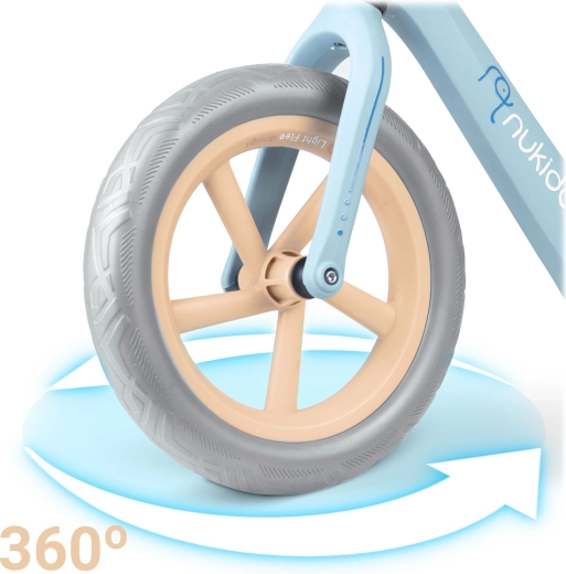 Lahek in vzdržljiv poganjalec Nukido Light Flee je odličen prvi korak do kolesa. Ima najlonski okvir, nastavljivo višino sedeža in neprebojna kolesa iz EVA pene 12". Z le 2,8 kg se zlahka upravlja, izboljšuje koordinacijo in ravnotežje ter ponuja udoben penast sedež in gumijaste ročaje z omejevalniki za varen oprijem.