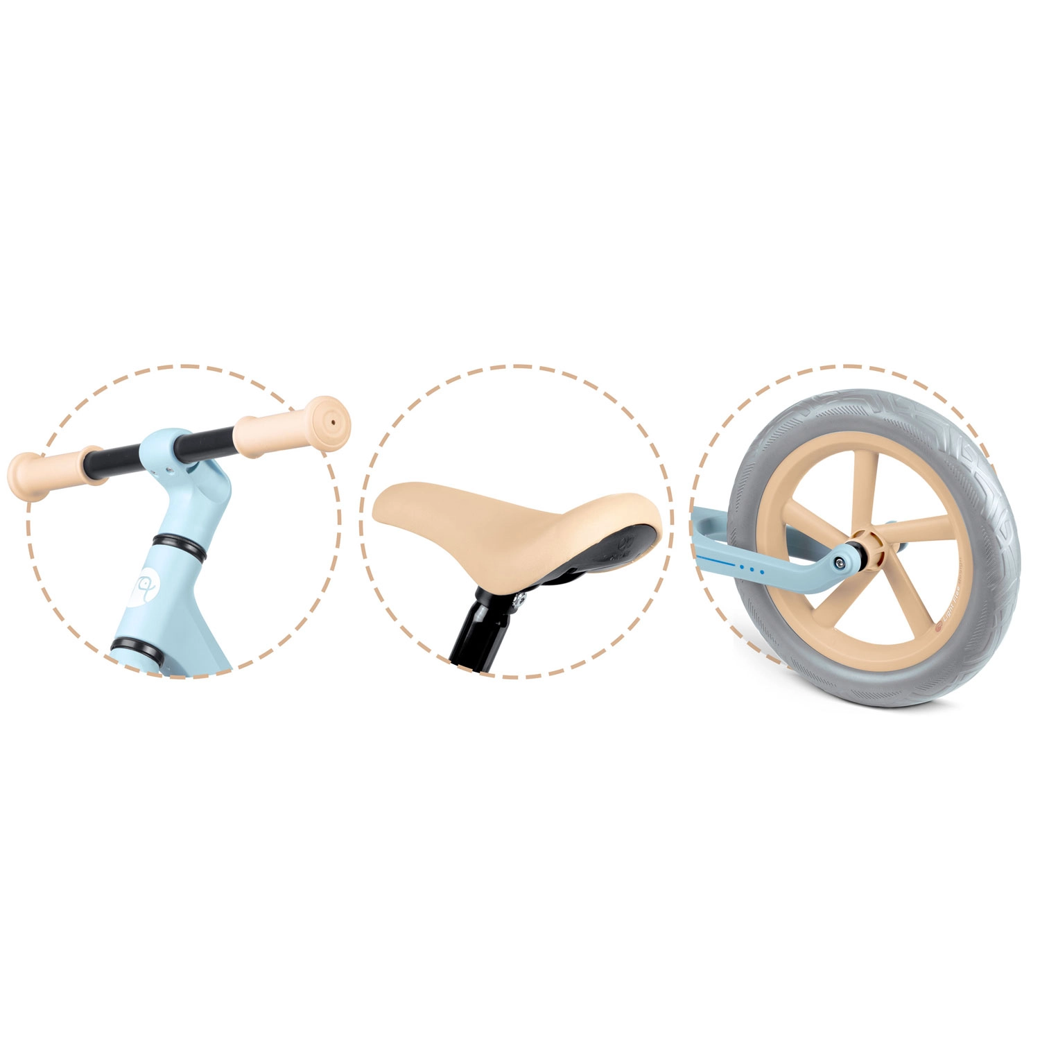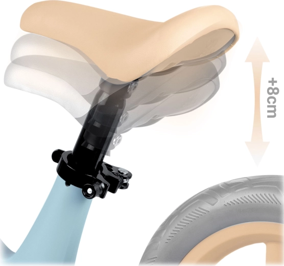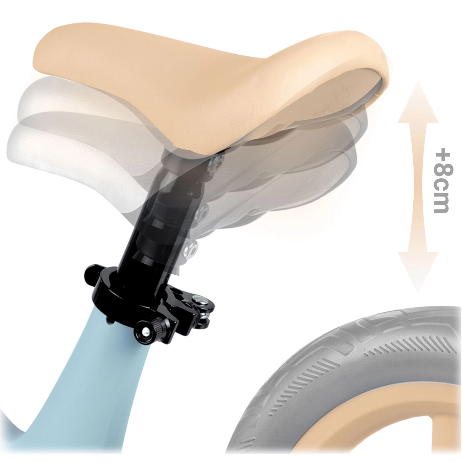 Z nastavljivo višino sedeža 35–41 cm poganjalec raste z otrokom in nudi udobje v vsaki fazi razvoja. Ergonomski penasti sedež in nedrseči ročaji z omejevalniki povečujejo udobje in varnost pri vsaki vožnji.