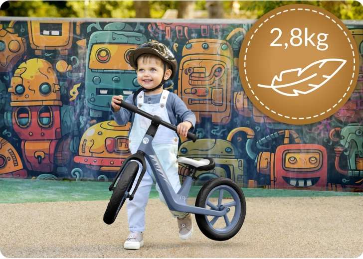 Teža le 2,8 kg olajša začetek, vodenje in prenašanje. Otrok se hitreje uči loviti ravnotežje in zavijati brez nepotrebnega napora.