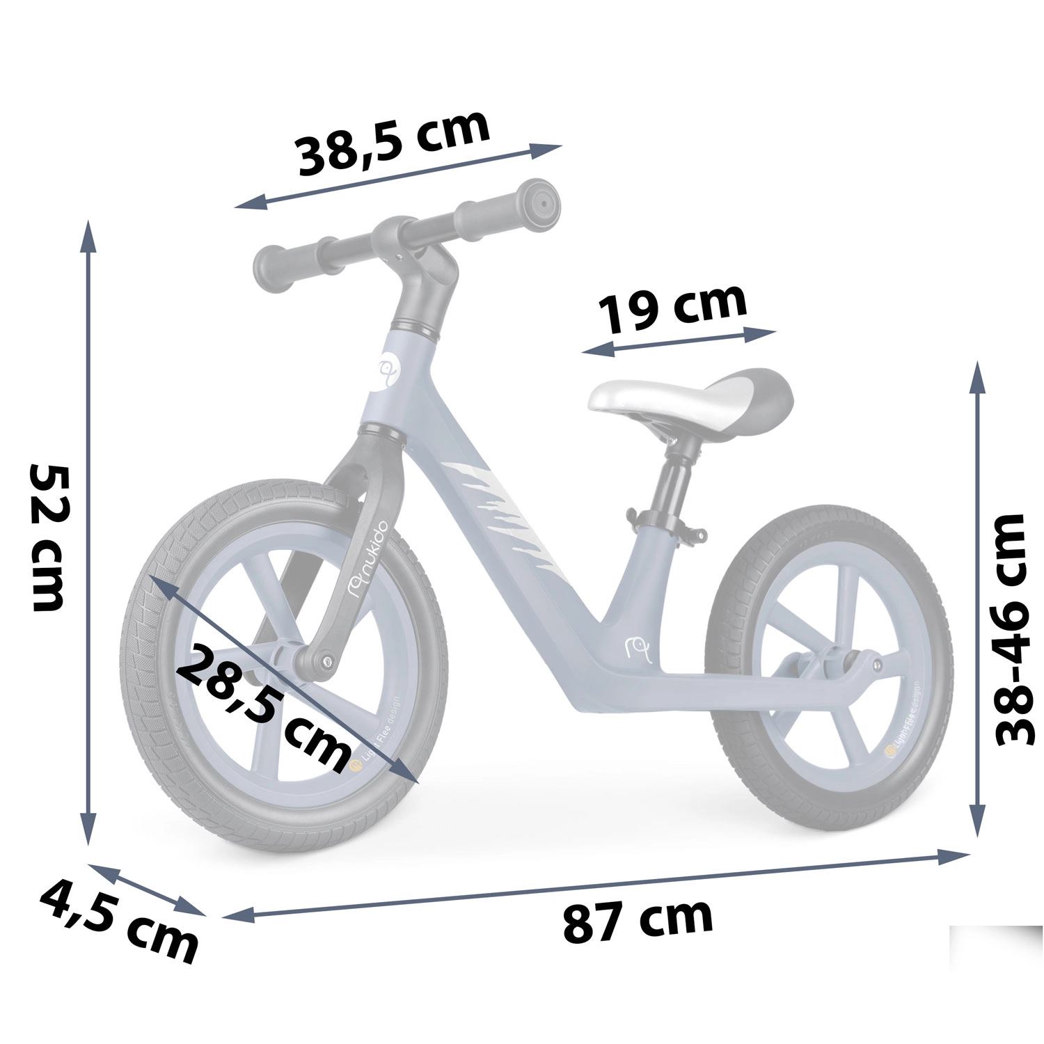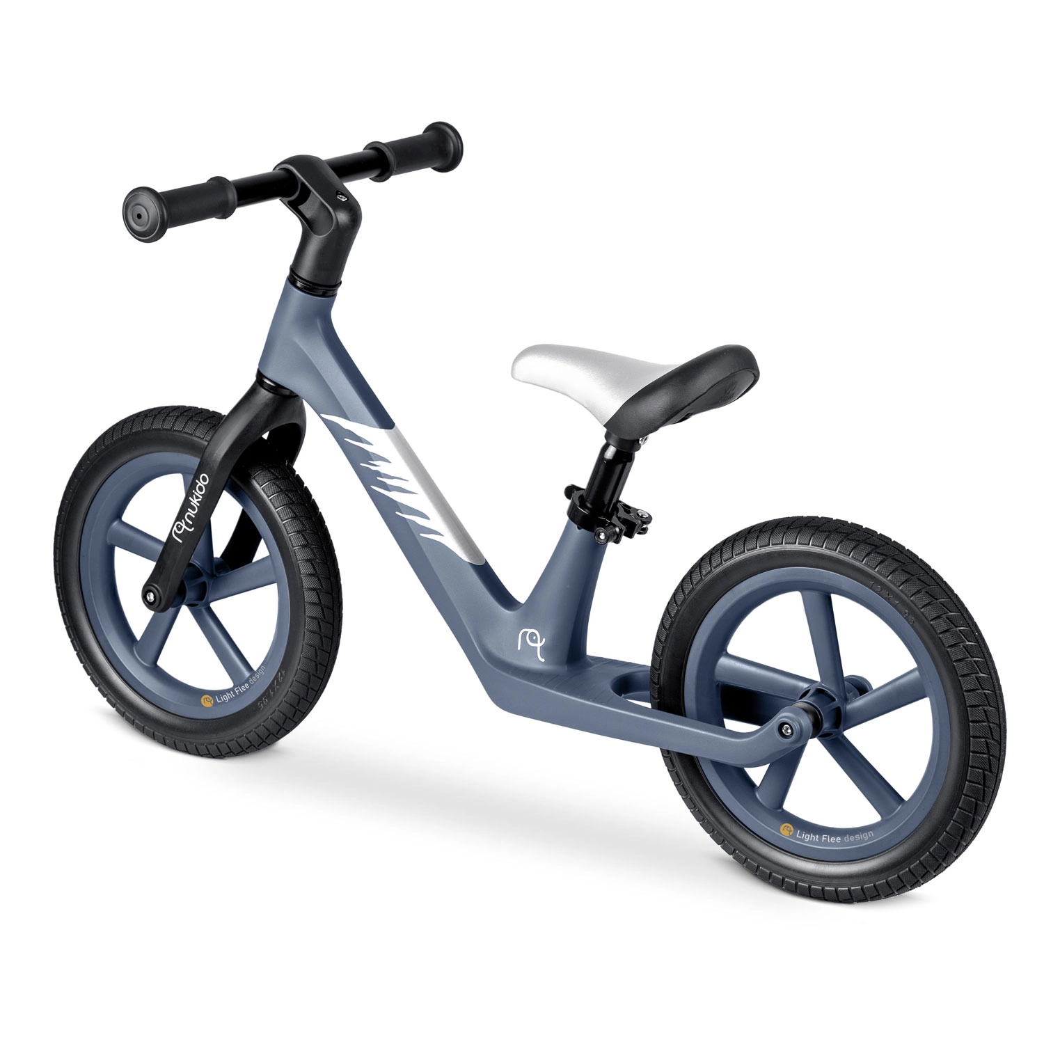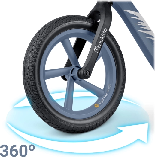 Izjemno lahek poganjalec NUKIDO Light Flee pomaga otrokom razvijati ravnotežje in koordinacijo še pred prvim kolesom s pedali. Ima vzdržljiv najlonski okvir, nastavljivo višino sedeža v razponu 8 cm, mehki ergonomski sedež in neprebojna 12" EVA kolesa za gladko in varno vožnjo. Zahvaljujoč protizdrsnim ročajem z odbojniki je oprijem zanesljiv, kolo pa je super lahko – le 2,8 kg, zato je enostavno za upravljanje in prenašanje.