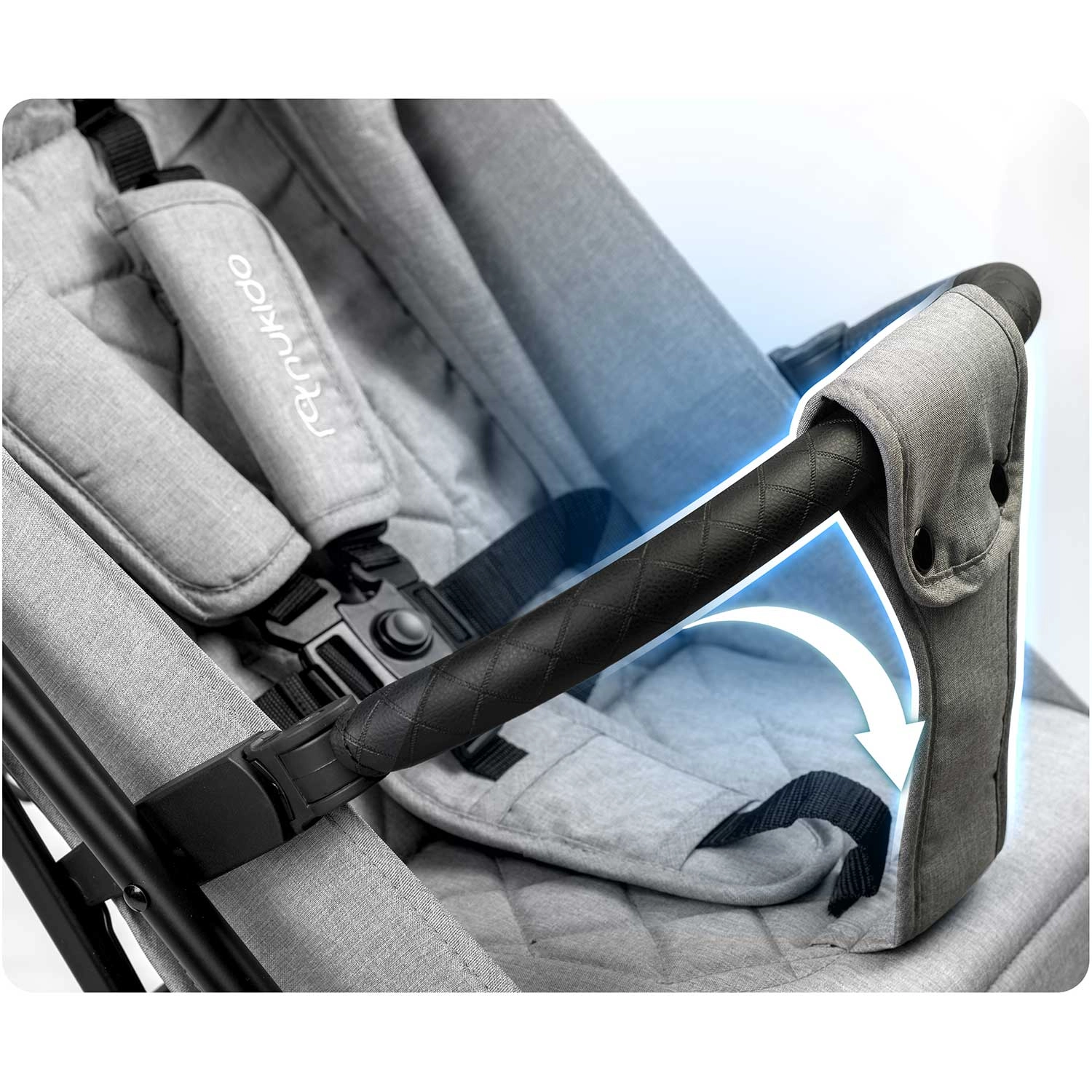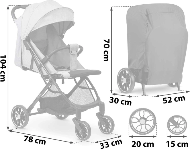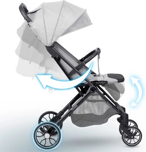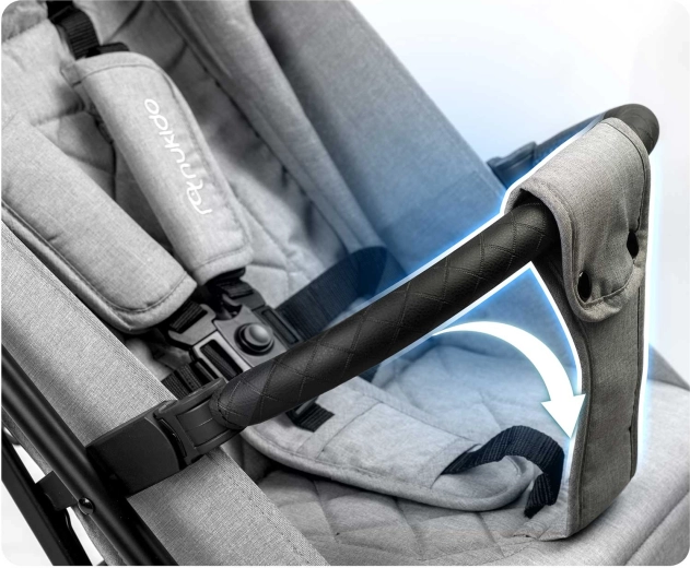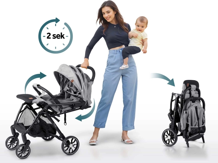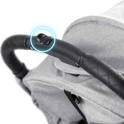 Intuitivni gumb omogoča hitro in varno zlaganje vozička – idealno za javni prevoz, avto ali do vrat letala. Po zlaganju je kompakten in enostaven za prenašanje.