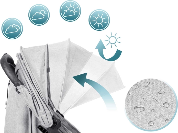 Prilagodite senčenje glede na vreme in del dneva. Strehica ščiti pred soncem, vetrom in rahlim dežjem ter izboljša udobje med spanjem ali opazovanjem okolice.