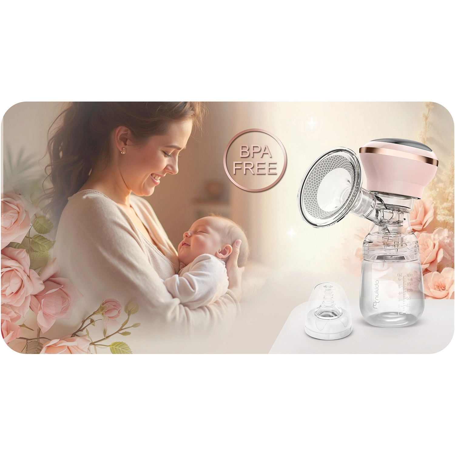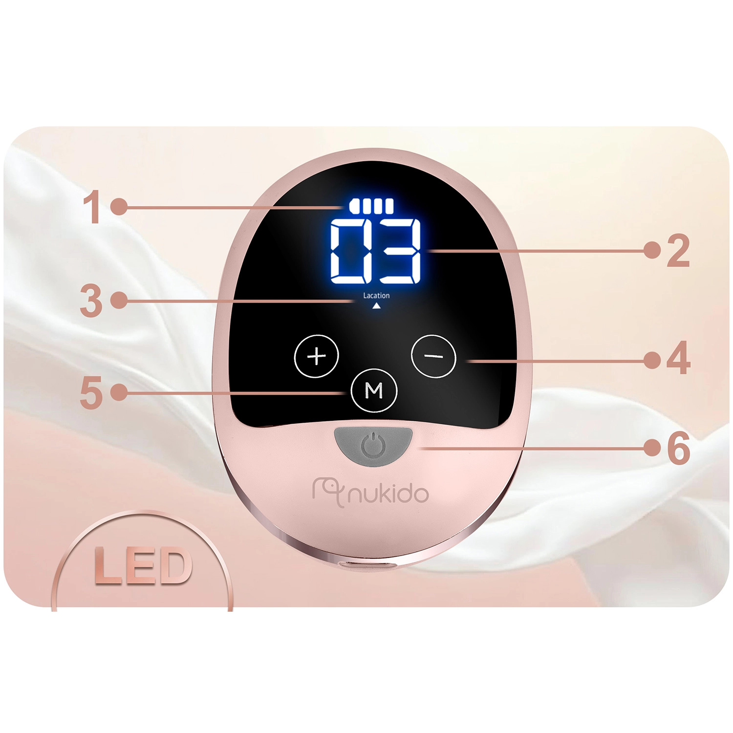 Prsna črpalka Nukido je zasnovana za udobno in učinkovito črpanje kjerkoli in kadarkoli. Tri inteligentne faze sesanja (stimulacija, počasno in globoko sesanje, globinski zaključek) z do 9 stopnjami nastavitev nežno podpirajo laktacijo in posnemajo naraven ritem dojenčka. Čitljiv LED-zaslon na dotik prikazuje fazo, intenzivnost in stanje baterije, zato imate vse pod nadzorom tudi ponoči.