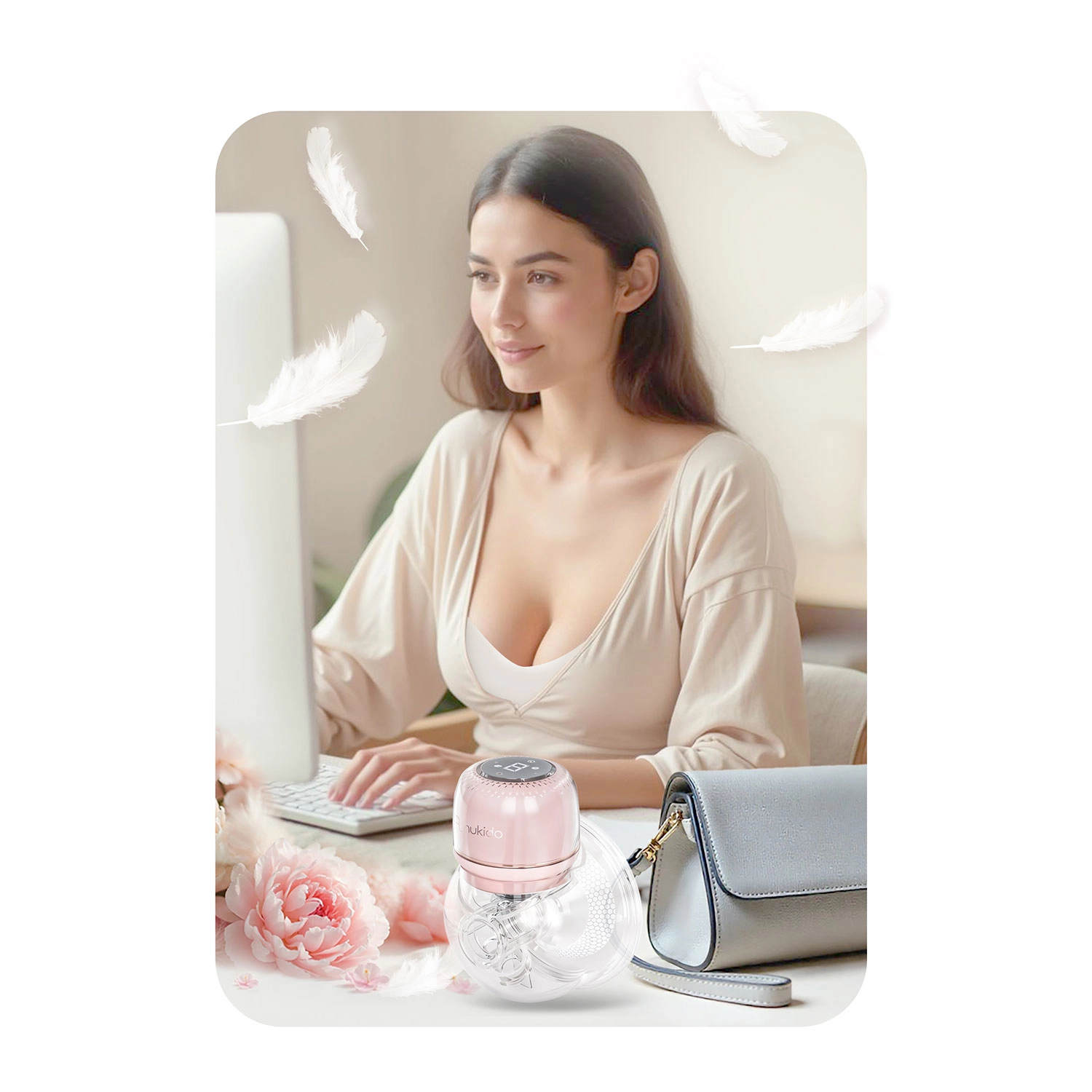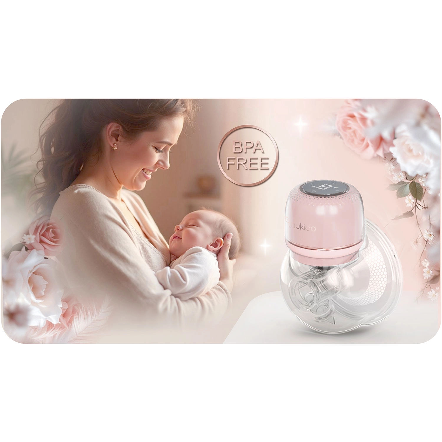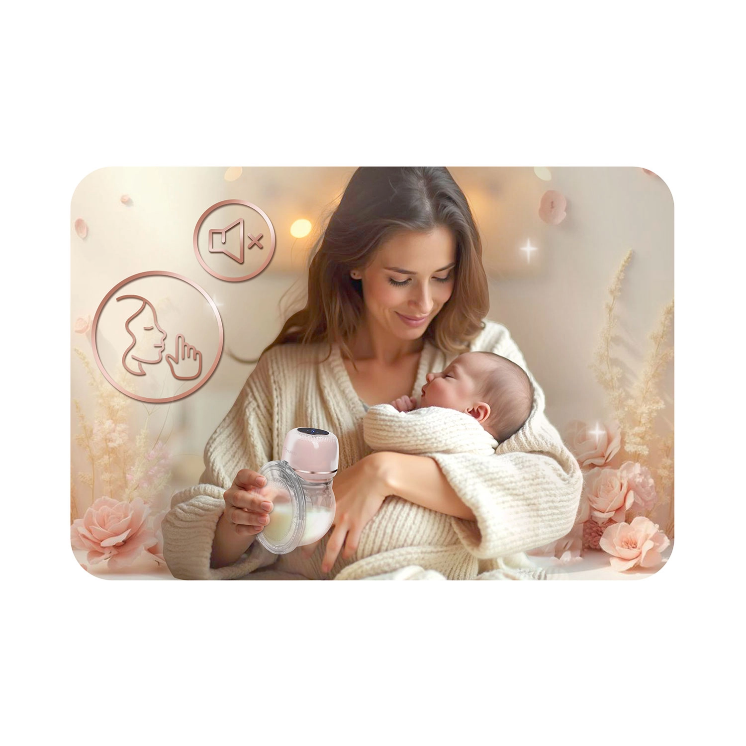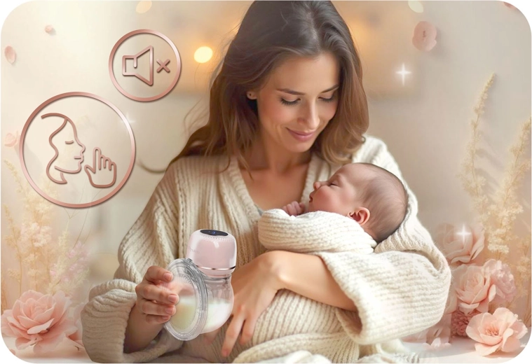 Vgrajena litijeva baterija za do 3 ure delovanja in polnjenje prek USB‑C. Tiho delovanje ne moti dojenčka niti ponoči in vam omogoča proste roke.