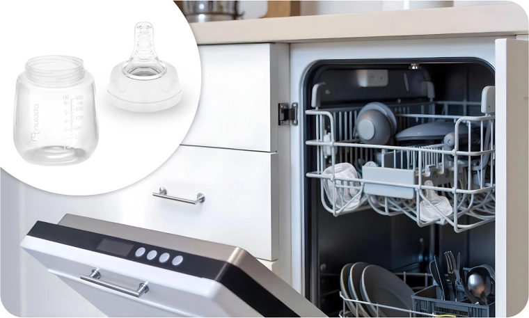 Širok vrat olajša polnjenje in čiščenje, posamezne dele je mogoče pomivati v pomivalnem stroju ali ročno za največjo higieno.