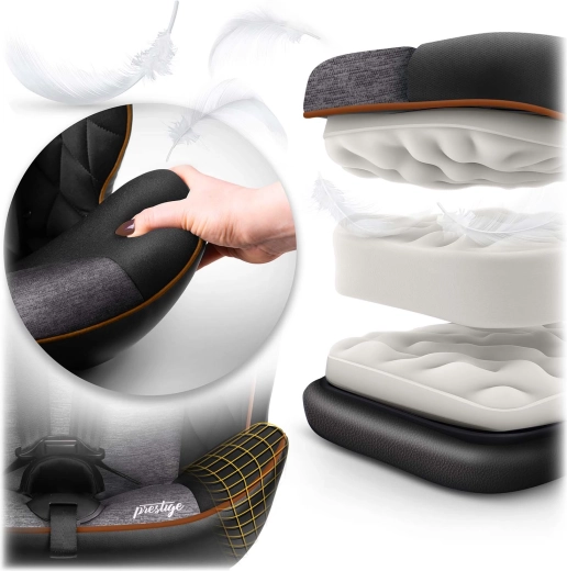 Nastavljiv vzglavnik v 12 korakih in 5-stopenjska regulacija nagiba zagotavljata ergonomijo od novorojenčka do šolarja. Mehko oblazinjenje in novorojenčkov vložek povečujeta udobje.