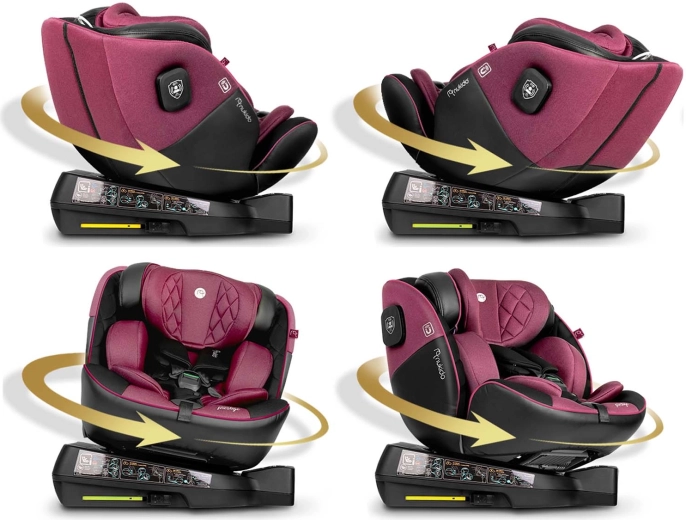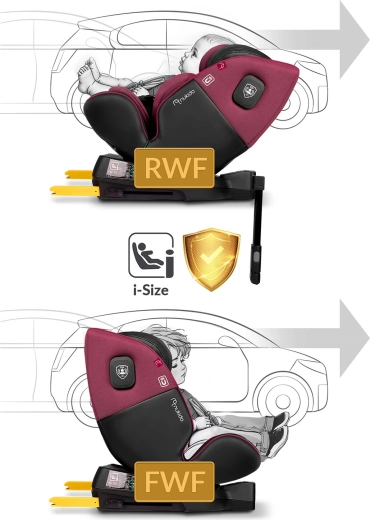 Sedež preprosto zasukate proti vratom, otroka pripnete brez zvijanja hrbta in z enim gibom izberete RWF ali FWF. Možnost blokade v 4 položajih povečuje udobje in varnost.